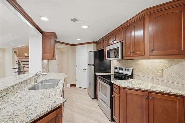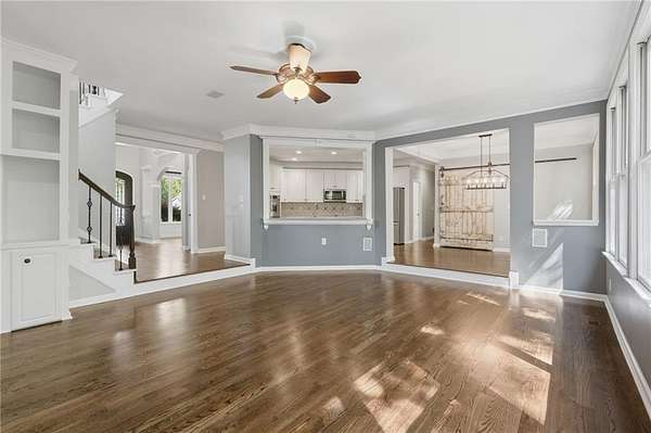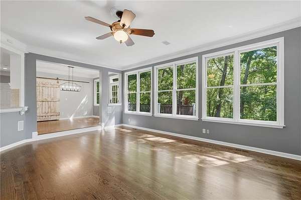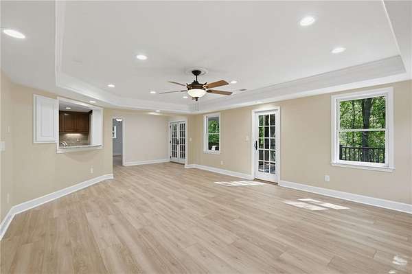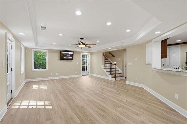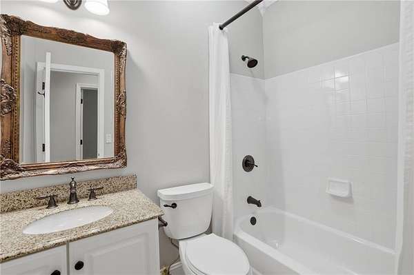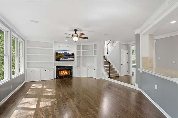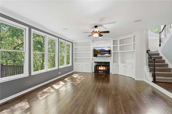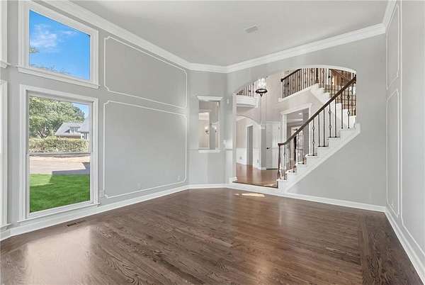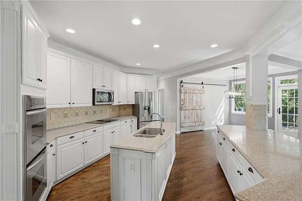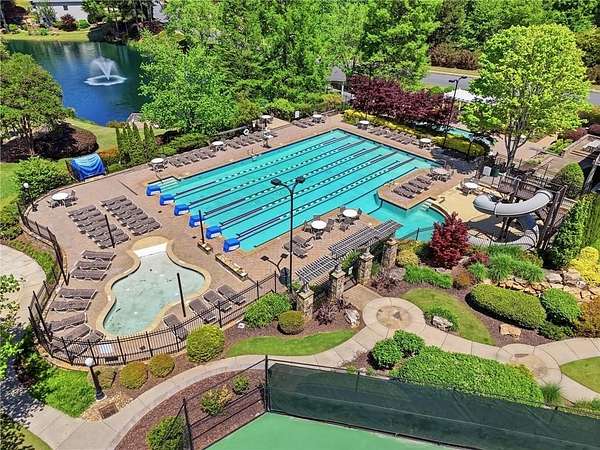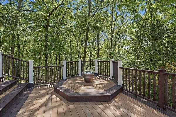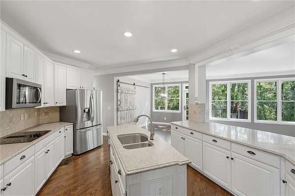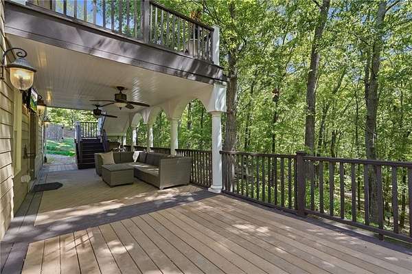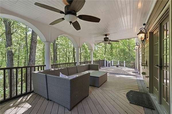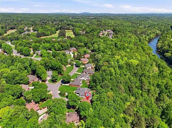 This stunning 6-bedroom, 5-bathroom riverfront home offers the perfect blend of luxury, comfort, and outdoor living on a private 2.45-acre cul-de-sac lot. Nestled in a highly desirable neighborhood within an award-winning school district, this residence provides a peaceful retreat with resort-style amenities just steps away, including championship golf, an Olympic size pool, tennis courts, pickleball courts, basketball courts, and an active social events calender. Step inside through custom iron double entry doors to beautiful brand-new refinished hardwood floors on the main level. The bright living room is flooded with natural light from abundant windows, flowing seamlessly into a formal dining room. The heart of the home features an open-concept kitchen overlooking the family room, complete with built-in shelving for effortless entertaining. A convenient main-level bedroom and full bath, plus a laundry room off the kitchen with direct garage access, complete the first floor. Upstairs, the spacious primary suite is a true retreat with a luxurious en suite bathroom boasting a jetted tub, separate shower, dual vanities, and a generous walk-in closet featuring custom shelving and a secure jewelry lock drawer. Three additional bedrooms and a full bathroom provide ample space for your family . The fully finished walk-out basement is an entertainer's dream, with brand-new LVP flooring throughout. It includes a full second kitchen with pantry, a bedroom, two full bathrooms with heated floors, a second laundry room, a dedicated gym, and generous storage. Outside, enjoy two large Trex decks-one covered-for seamless indoor-outdoor living. The expansive, tree-filled 2.45-acre lot offers ultimate privacy and breathtaking views toward the Chattahoochee River running along the property's edge where you can spend your time kayaking, fishing or just enjoying the sounds of the river! Quiet, private, and perfectly located-this home is a rare find in one of the area's most sought-after communities Olde Atlanta Club. Don't miss your opportunity to make it yours!