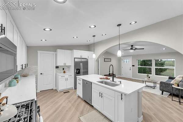 Beautifully Remodeled Ranch-Style Home on 5 Acres Experience the perfect blend of modern comfort and wide-open space in this newly remodeled ranch-style home. Upon entering the living room, you'll notice the custom flooring flowing seamlessly into the kitchen and dining area. Set on 5 peaceful acres, this home features four spacious bedrooms, each with a walk-in closet, and stylish updates throughout, making it the ideal retreat for those seeking space, privacy, and move-in-ready convenience. The remodeled kitchen is a true showstopper, boasting sleek quartz countertops, custom cabinetry, new stainless-steel appliances, and a custom tile backsplash that adds a touch of character and charm. The open layout provides a great flow for everyday living and entertaining. The primary suite offers a private retreat with a large walk-in closet and a luxurious five-piece bathroom featuring quartz countertops, double sinks, custom tiled walls, a soaking tub, and a separate, custom-tiled shower. Down the main hallway, you'll find three additional bedrooms and a beautifully updated bathroom, offering plenty of space for family and guests. This property is serviced by a well and septic system, the septice system has been serviced with new baffles and risers, and the home is powered by propane, making it ideal for efficient and sustainable rural living. New electric panel, interior and exterior paint, windows, doors and trim and texture, gutters. Outside, the expansive 5 acres offer endless possibilities-with 5 acres of land, there's ample room for animals, gardening, recreation, or future expansion-whether you're dreaming of a shop, barn, or guest house. Conveniently located just a short drive from town, this property offers the best of both worlds: modern living and wide-open space. Set your private showing today.