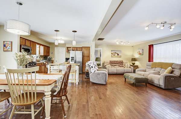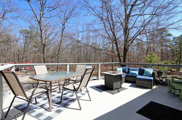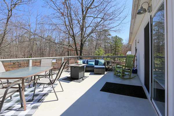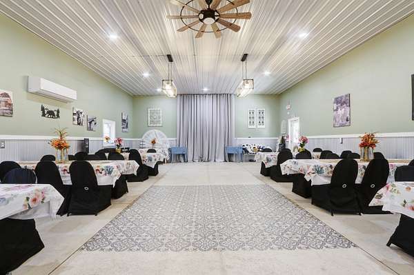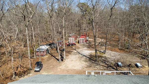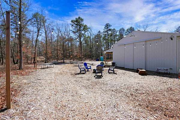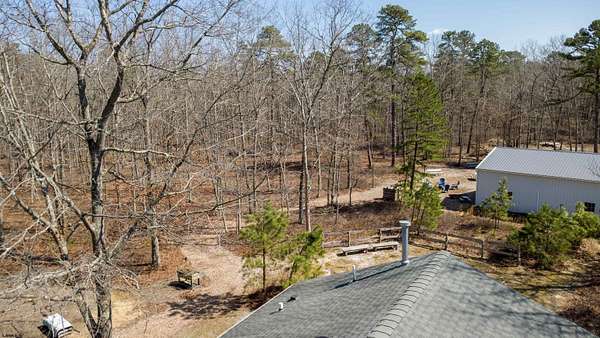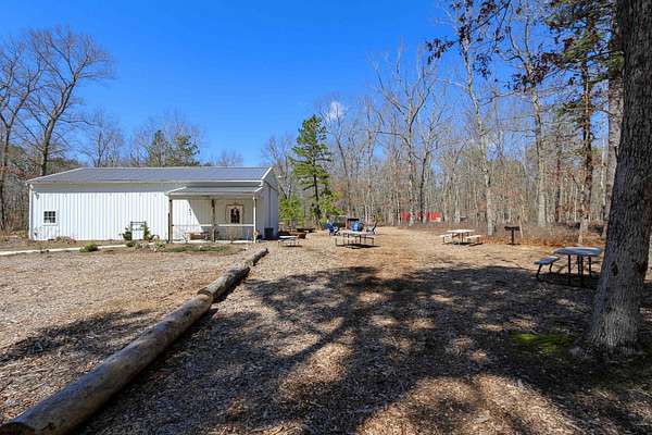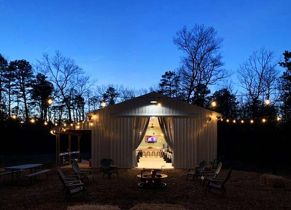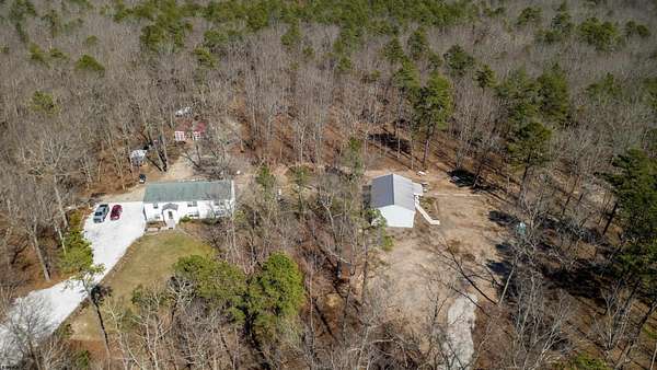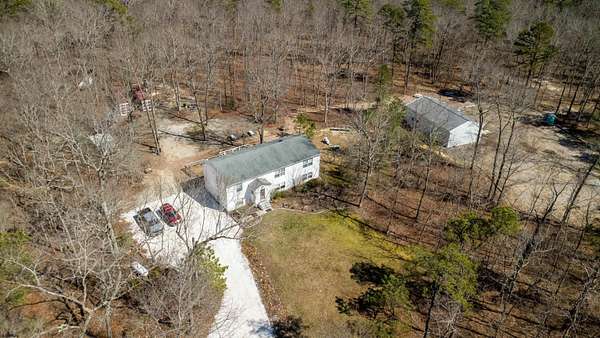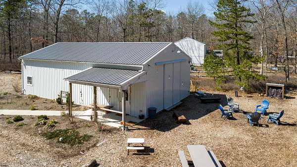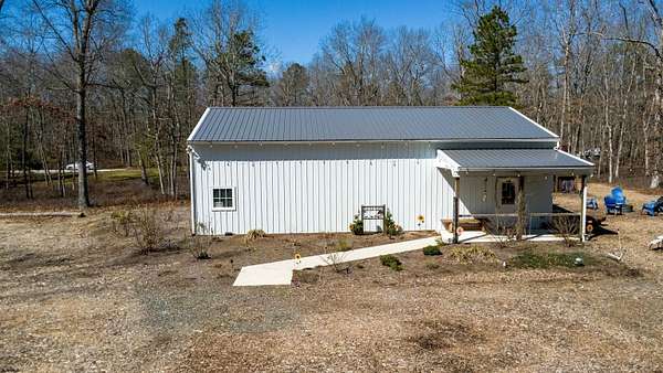 Home is truly where comfort meets lifestyle in this exceptional, one-of-a-kind estate. Known as Bears Head Preserve, this remarkable property is tucked away on nearly 15 acres of scenic, wooded land, offering a private retreat defined by craftsmanship, character, and modern comfort. Combining seclusion, a true rural lifestyle, and space for your own animals, the property features private walking trails and agroforestry, along with an educational space designed to celebrate and connect with nature. The main residence, a striking modern farmhouse, features two distinct living areas thoughtfully designed for both everyday living and entertaining. The main level showcases an open-concept kitchen, living, and dining area with sweeping views of the grounds and surrounding wildlife. A 14-foot fiberglass balcony extends the living space outdoors, with stairs leading down to the backyard. Inside, warm wood flooring and refined farmhouse finishes create a welcoming yet elevated aesthetic, with the home offered fully furnished and move-in ready. The primary suite features a walk-in closet and a spacious en-suite bathroom complete with a garden tub and separate shower. Two additional bedrooms, a full bathroom, and a laundry room complete this level. The lower level offers a fully independent living space with a dining area, living room, three bedrooms, a full bathroom, and a second laundry room, an ideal setup for multigenerational living, providing comfort and flexibility for extended family or guests. Upon arrival, you’re greeted by friendly ducks and chickens, enhancing the property’s authentic farm lifestyle. A standout feature is the beautifully finished barn, perfectly suited for gatherings and special events. Thoughtfully designed, it includes oversized sliding doors, ambient string lighting, fire pits, heating and air, a dedicated parking area, professional landscaping, and a full bar. Walking trails throughout the property invite you to explore the serene surroundings and enjoy a true connection to nature. Recent updates include a newer septic system (2021), a newer hot water heater, and a GAF roof replaced within the last five years. The barn, approximately three years old, adds exceptional versatility. Secluded yet conveniently located near everything, Bear's Head Preserve is a rare opportunity to own a truly distinctive estate, offering tranquility and a lifestyle deeply connected to nature, where every day feels like a retreat.