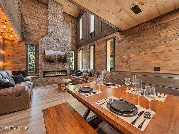 Welcome to 619 Dutch Way, completed in October 2025! This rustic modern cabin is truly a unique property. Not only does it offer amazing mountain views from its 2.5 acre quiet hilltop, it also has a location that provides accessibility to all of the major attractions and includes amenities that will make you want to stay, play and relax the day away. This Beautiful Cabin is a new construction masterpiece and was just completed in October of 2025. Additionally this property sits across the street from the entrance to one of the Smokies most sought after attractions; WildSide by Anakeesta. At this cabin on Dutch Way you will find serenity, beautiful views and a brand new 800ft long paved driveway for easy access. Amenities include: -2700sqft of thoughtfully designed living space -4 bedrooms -3 bathrooms -1 half bath -All furnishing and fixtures -Custom vanities in each bathroom including copper sinks -Open-concept full size kitchen with island -Modern garage door that opens to large deck with hot tub -Multi Sport Simulator room including a 11ft by 8ft screen including 14 unique sports. -Inside electric fireplace in living room -Full size wet bar with mini fridge, ice-maker, and small dishwasher including custom, epoxy river pour countertops. -Rustic Modern features and decor -800ft of brand new driveway including a paved parking lot for 6+ cars -2.5 acres Nearby attractions include: - 0.2 miles to Anakeesta's new sister attraction: Wildside -4 miles to the Smoky Mountain National Park -4 miles to the strip in Pigeon Forge -8 miles to Dollywood -7.5 miles to Gatlinburg This property was developed by a team known for building and operating numerous rental cabins in the Smokies. They understand the short term rental market and build turnkey products that are perfect for an investor or a dream family get away that you don't want to leave. Don't miss your chance to own this stunning, turn-key cabin in the heart of the Smokies. BUYER/BUYER AGENT TO VERIFY ALL INFO CONTAINED HEREIN.