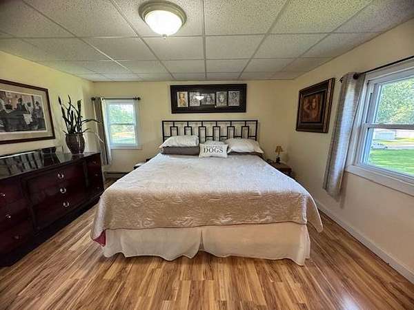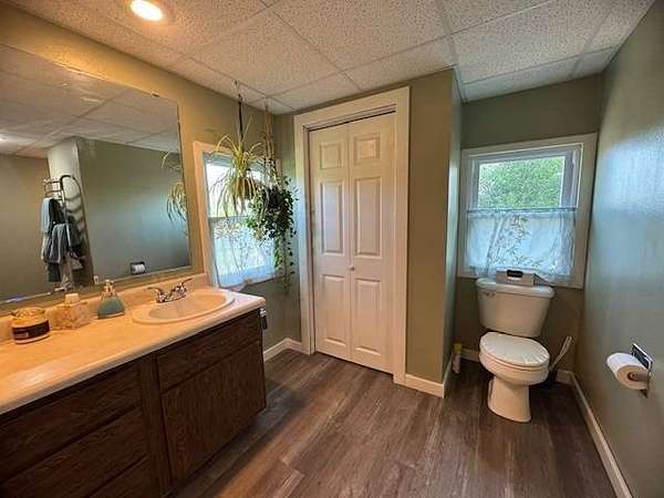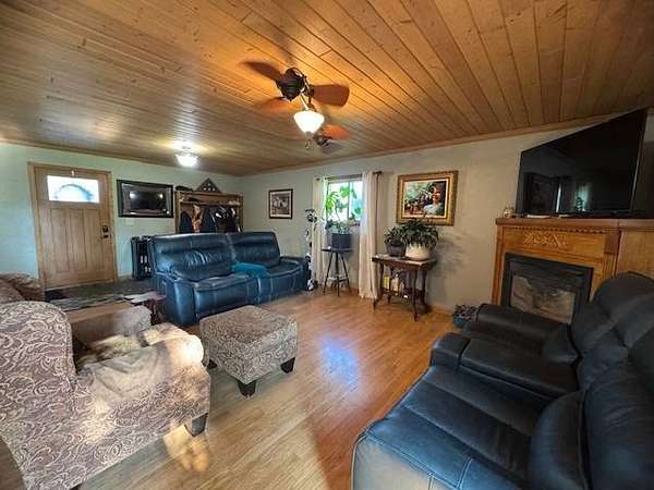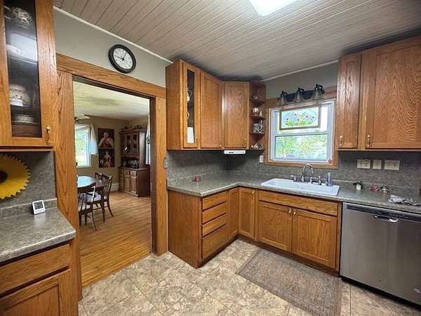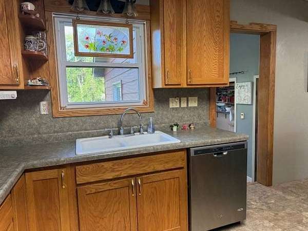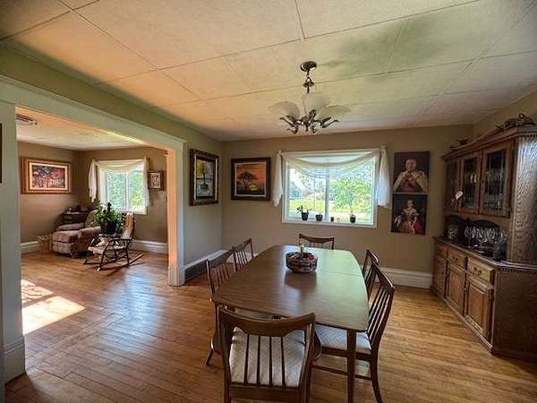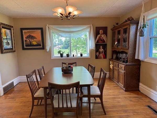 Situated on two acres within the Webster City limits, this well-maintained two-story home offers space, privacy, and timeless character. The expansive family room features a cozy fireplace, perfect for gathering on winter evenings. The functional kitchen provides counter seating and easy access to the main floor laundry room with abundant storage. Additional highlights on the main level include a 3/4 bathroom, hardwood floors, formal dining room, living room, and office/den. Upstairs, you'll find two bedrooms, plus a spacious primary suite with an en suite bathroom that is also accessible from the hallway. The basement includes utility space and a wine cellar, offering both functionality and charm. Outdoor amenities include a one-plus stall detached garage, asphalt driveway, fruit trees, and a private fenced patio located just off the family room. With its combination of acreage, privacy, and city convenience, this distinctive property is a rare find. Schedule your private showing today.