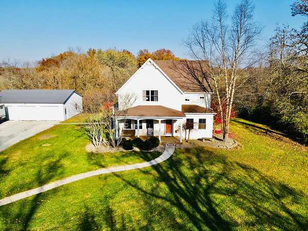 Discover your private country oasis on 12.34 acres at 619 E Fairground Ave.,Osgood. This traditional Quality Built 2,647 sqft farmhouse sits on a long, secluded drive and offers classic charm with a welcoming front porch and peaceful covered back porch. The home has 3 bedrooms, 2 full baths, and a full poured walkout basement with plumbing for a future kitchenette, bath, and potential 4th bedroom. Enjoy a stunning half-acre, approx. 20-ft-deep stocked pond perfect for fishing and relaxing. A 1,200 sq ft pole barn garage with electric provides ample space for vehicles, equipment, or a workshop. A 5,500-gallon cistern with charcoal and sand filtration offers a reliable water system. Located minutes from Osgood and just 20 minutes from Greensburg, this property blends privacy, nature, and convenience. Come experience the tranquility and potential this beautiful country retreat offers.