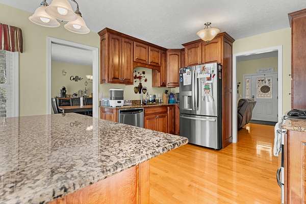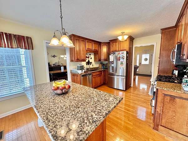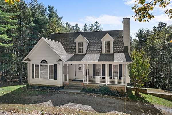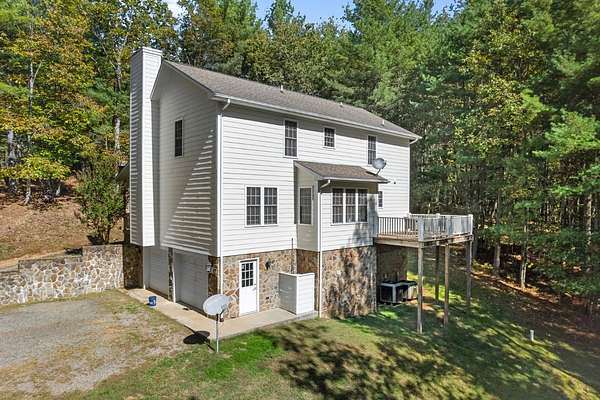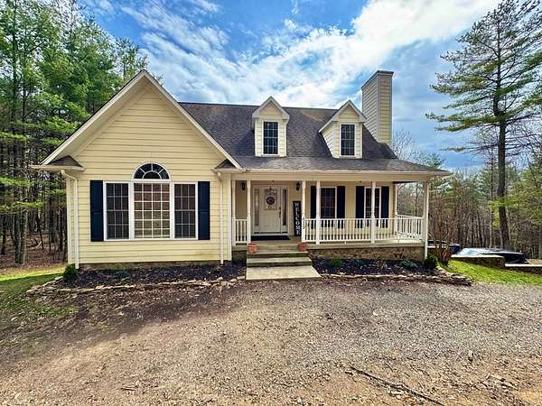 3 bedroom, 3 full and 1 half bath custom built cape cod style home just 10 minutes outside of Galax with 5 private, wooded acres, all at the end of the road. Open living with vaulted ceilings and formal dining room. Custom kitchen has granite counters, some new stainless appliances, island with storage and barstool seating. Off the kitchen is the laundry with more storage, half bathroom, and entry to trex deck. Deck also has a gas hook up for a grill. Master suite on the main level with vaulted ceilings, and bath offers double sinks, jet tub, a tile walk in shower, and walk-in closet. 2 bedrooms upstairs and another full bath with large vanity and shower/tub combo. Large windows for natural light and hardwood flooring throughout. Downstairs bonus room with closet, another full bath with shower/tub combo and large vanity, utility room and 2 car garage with room for more and another cold storage room under the front porch for even more storage. Maintenance free living outside with Hard plank siding and rock, with covered concrete front porch. Enjoy the properties' trails or sit by the fire pit and watch the sunset. In-ground dog fence and new water filtration/softener system. $200/yr road maintenance fee. Owner has home treated for bugs monthly and has had all gas lines inspected and serviced as well as the HVAC serviced less than early 2025.