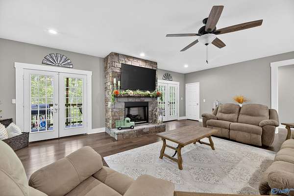 Tucked away on nearly 2 private acres in Grant, this charming single-story modern farmhouse invites you to slow down and stay awhile. With a little over 2,100 square feet, this 3 bedroom, 2 bathroom home offers the perfect blend of comfort and style. Sip your morning coffee on the spacious front porch and unwind in the evening on the back porch, surrounded by peaceful views. Inside, the primary suite provides a relaxing retreat, while the open living spaces are ideal for everyday living. Complete with a 2 car garage and NO HOA, this home delivers the privacy and freedom you've been searching for.