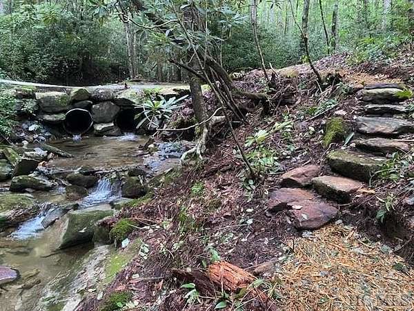 Nestled in the captivating valley between The Divide and The Crest, this unique 67.92 acre property offers a harmonious blend of serenity, adventure, and beauty. Less than half a mile from Panthertown Valley, hidden just off West Christy Trail in Sapphire Valley, this breathtaking estate extends a warm invitation to those seeking both peace and excitement. The heart of the property features a beautiful one-room furnished cabin, elegantly appointed and ready for immediate relaxation. Nearby, camping shelters with fire pits and manicured hiking trails provide ample opportunities for exploration and enjoyment of the outdoors. A defining feature of this estate is the 1700-foot bold cascading stream that runs the length of the property, surrounded by an enchanted forest adorned with a beautiful fern floor. Dramatic views of the rock face are visible from various vantage points, enhancing the already stunning natural surroundings. For the explorative soul, a Boulder Garden awaits your discovery, and a well-located picnic pavilion with a fire pit at the base of the stream trail serves as an ideal spot for gathering with family and friends. Nature enthusiasts will appreciate the property's commitment to conservation, as a portion of the land is protected by a conservation easement. This crucial element ensures the future of several endangered species of amphibians and plants, aligning perfectly with the area's abundant wildlife. Optional membership provides the ability to join Sapphire Valley amenities, enhancing the living experience with additional leisure options. Secluded, protected, and imbued with a peaceful ambiance, the moss-covered roads guide you through an environment that feels worlds away, yet is readily accessible. Whether envisioned as a perfect family estate or as a small six-home subdivision or company retreat, this property is ready to welcome its new steward. Embrace the possibility of living in harmony with nature,