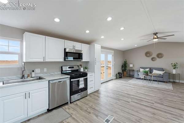 Spacious 3-Bedroom Home on 5 Acres with Custom Kitchen, Multiple Garages, and RV Setup Welcome to your slice of country paradise! This beautifully updated 3-bedroom, 2-bathroom home sits on an 5 acre lot, offering privacy, space, and endless possibilities for country living. Step inside to an inviting layout featuring a new kitchen with new cabinetry, stainless steel appliances, and ample of counter space-perfect for cooking, entertaining, and everyday living. * (A 53-inch center island-perfect for meal prep is on BACK Order )** The spacious primary suite includes a luxurious 5-piece bathroom with a soaking tub, separate shower, and dual sinks for a spa-like retreat. Outside, the property shines with incredible amenities including a detached two-car garage, a one-car detached garage, a large shed, and a chicken coop. There are also some fenced areas ideal for animals or gardening. For added convenience, the property is set up for RV parking and includes propane, water, and power hookups, along with a dedicated dump station-perfect for guests or extended stays. With 5 acres of open land, wide-open views, and versatile improvements, this property offers the perfect blend of comfort, functionality, and rural charm.