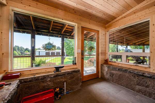 Discover a special piece of Bend history on 2.42 acres with .9 acres of senior COID water rights. Originally homesteaded in 1911, this thoughtfully restored property features the fully updated 1929 stone farmhouse and a charming, modernized original cabin. The 4-bed, 3.5-bath main home blends timeless character with high-quality finishes, updated systems, and two primary suites. A spacious 5-bay garage with workshop adds flexibility, while the wraparound covered deck overlooks the orchard, irrigation pond, and open landscape. Recent price adjustment reflects the decision to separately list the adjoining pasture, which is its own legal lot--see 61855 Dobbin Rd. Buyers benefit from more favorable pricing when purchasing both together. A rare opportunity to own a private retreat, small farm, or legacy homestead just minutes from town. For more Info see Recent Podcast here : bit.ly/3Y4orzI