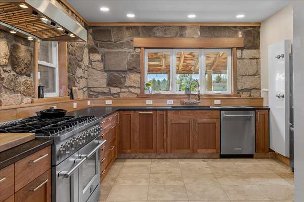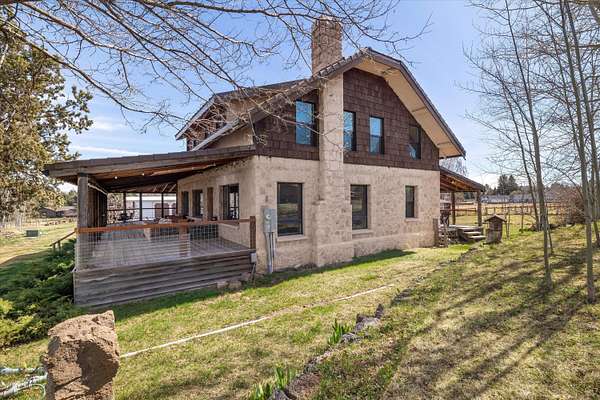 Discover a rare piece of Bend history on 5.71+/- acres of irrigated land with senior COID water rights. Historic Anker Farm includes two legal lots of record offering future development or multi-generational potential. The fully renovated 3,200 sq ft (1929) stone farmhouse features 4 beds, 3.5 baths, dual primary suites, a large chef's kitchen, stone fireplace, and wraparound deck overlooking pond, pasture, and orchard. A separate 471 sq ft (1911) cabin offers guest or income potential (~$25K/yr). Improvements include a 2,600 sq ft 5-bay shop/garage, fenced irrigated pastures, and separate septic systems for home and cabin. Enjoy privacy, usability, and mountain views just minutes from Bend--ideal as a homestead, investment, or private retreat.