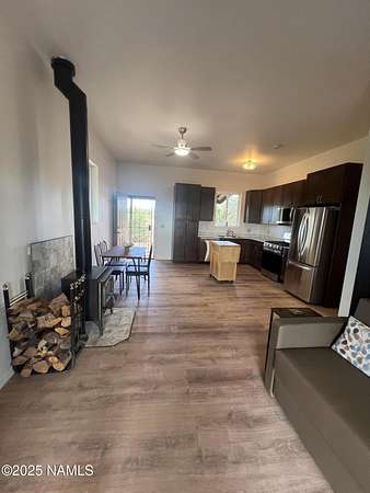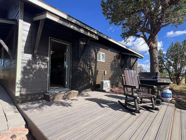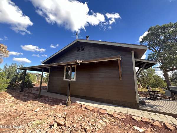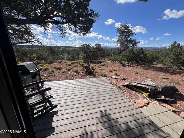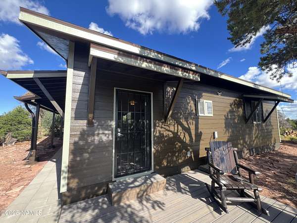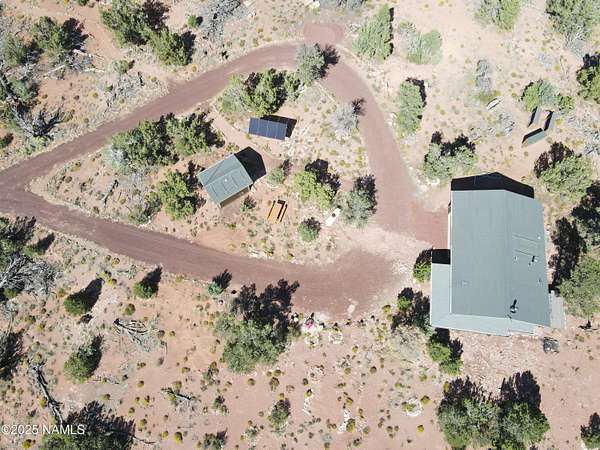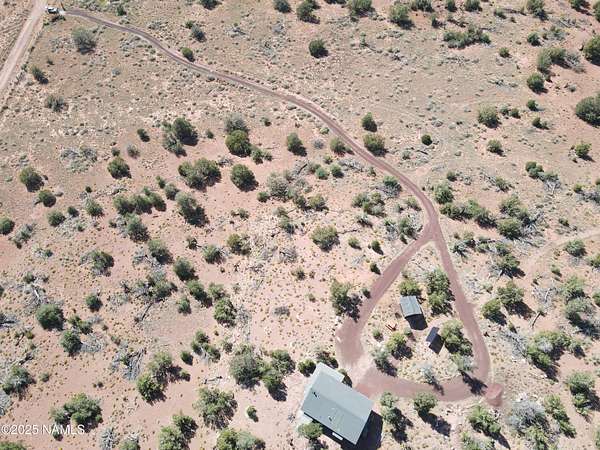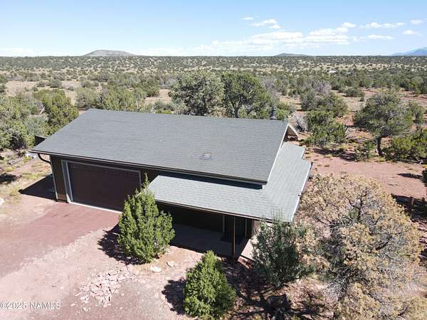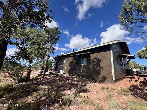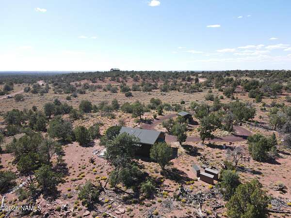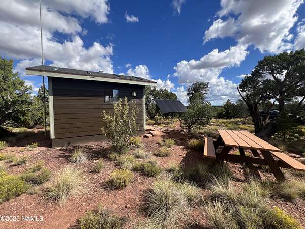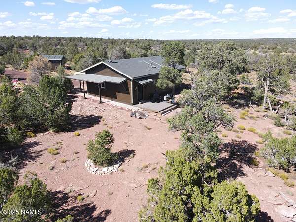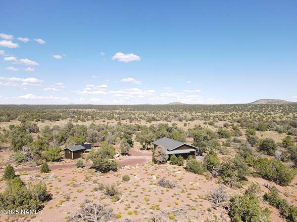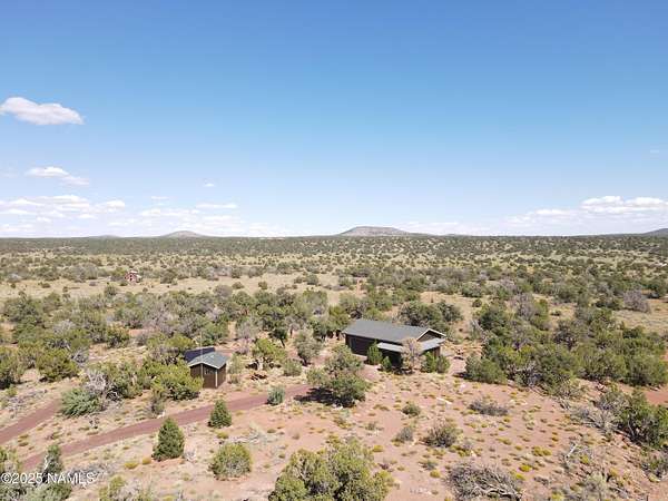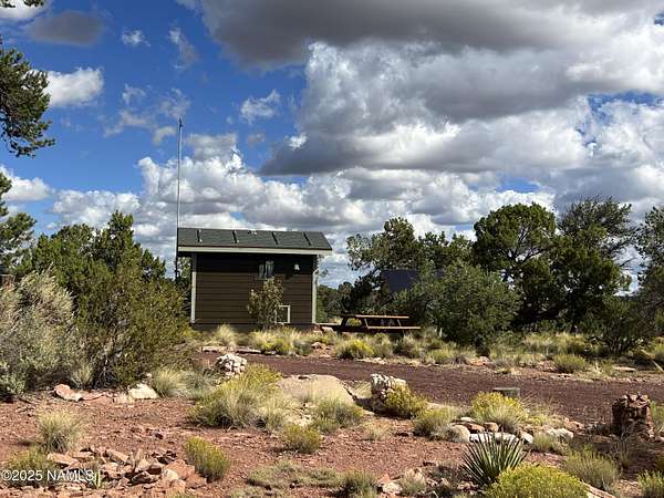 Escape to the high desert & embrace the peace and beauty of Northern Arizona with this cozy off-grid home nestled on 16 private acres in South Rim Ranch. Just 30 min south of one of the most iconic landmarks in the world ... the Grand Canyon, this retreat offers the perfect balance of seclusion, natural beauty, and access to adventure. Surrounded by wide-open skies, juniper and pinon trees, and panoramic mountain views, the cabin is ideal for weekend getaways or full-time off-grid living. Some of the best views are from this home as well as the magnificent dark skies of Northern Arizona. Located in a quiet community with well-maintained roads for year round access. This retreat has been completely remodeled with new kitchen cabinets, countertops, appliances as well as new flooring