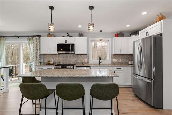LISTEN TO THE SOUND OF THE RIVER. This nearly new 3 bedroom 3 bath Colonial is nestled on 2.47+/- acres with privately owned frontage on the Suncook River. Step inside to find wood floors, an open floor plan with spacious kitchen including wood cabinets, granite counter tops, 2 islands and dining room ideal for entertaining & light & bright living room with electric fireplace for ambiance. There's a slider leading to a private back deck perfect for cook-outs. Upstairs is a luxurious primary suite with custom tile walk-in shower and walk-in closet, 2nd floor laundry, two additional bedrooms and full bath. Finish the walk-out lower level for added living space and take in the view of the back yard through the slider and windows which add daylight. Efficient propane heat and central Air conditioning. Septic is designed for 4 bedrooms. Gutters with leaf guards on house and garage for easy maintenance. Elevation Certificate to verify house is not in a flood zone. Enjoy country living with the convenience of being just a short ride to Alton Bay on Lake Winnipesaukee, 20 minutes to Concord and 30 minutes to Tilton. Close to Catamount snowmobile trail.