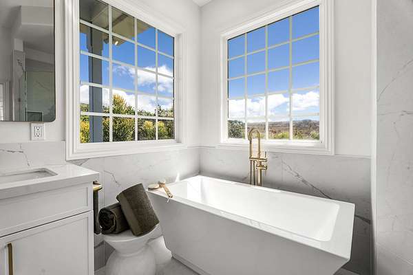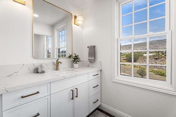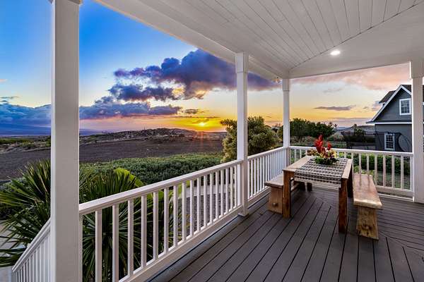 Set on three private acres in Anekona Estates, this fully renewed Waimea estate showcases panoramic ocean, coastline, sunset, sunrise and mountain views from Kohala to Mauna Kea and Hualalai. Extensively transformed and never lived in since completion, the home blends modern design with the warmth of Waimea living. The reimagined great room features vaulted ceilings, expanded living spaces, and a brand-new kitchen with custom cabinetry, quartz counters, and bar seating. The primary suite offers a spa-inspired bath, dual vanities, soaking tub, and walk-in closet with built-in laundry. Upstairs, three bedrooms provide flexible space for family or guests. Over 900 sqft of expansive wraparound lanais overlook landscaped gardens and the seasonal Keanuimano Stream. The detached 2 bed, 1 bath guesthouse also features incredible views and is ideal for guests, extended family, or rental income. Additional features include a three-car garage, dual laundry areas, and County-approved Koa Architects plans for a pool and further home expansion. Now offered over $400K below the previous list, this remarkable Waimea estate unites acreage, turnkey living, and sweeping views in one extraordinary offering.