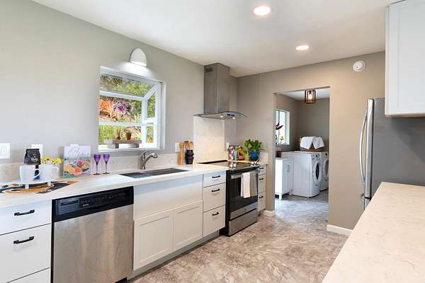 - Dishwasher, Disposal, Dryer, Range, Refrigerator, Washer, Washer/Dryer Stacked