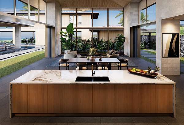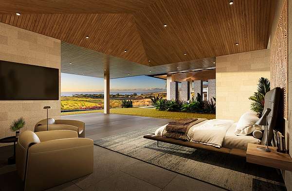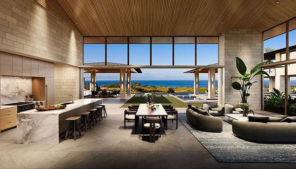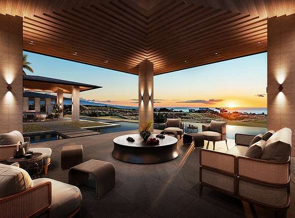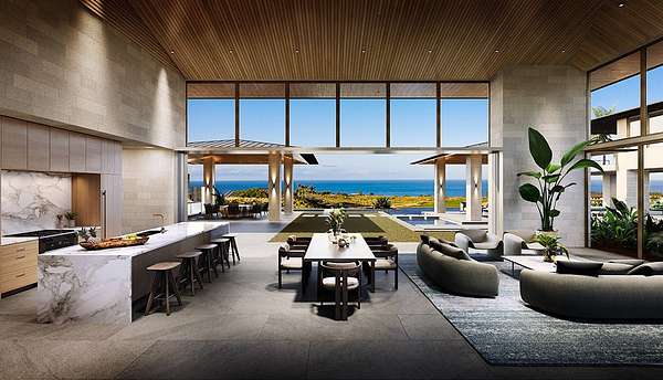 Considered the most sacred of the island's five volcanoes, Mauna Kea's summit is the highest in all Hawaii. Quite naturally, ancient Hawaiian law reserved visits to the peak for only the highest-ranking nobles. In keeping with this tradition, at the Mauna Kea Resort among the most favored sites are those at the highest elevation. At the centerpiece of the upland properties is a rare and remarkable offering of custom residences. Hapuna Estates Phase 2 sites sit above the 8th fairway of Arnold Palmer's Hapuna Golf Course. All share exquisite finishes that compliment the airy, contemporary ethos of the residences. Each is sited to assure privacy and optimize the views of the Kohala Coast all the way to Maui beyond. Hapuna Estates 15 & 16 (with 2 TMK#s, 3-6-2-21-12 & 3-6-2-21-11) consist over an acre with amazing golf and ocean views and comes with a house plan. The home features living/dining/kitchen, theater, 2 powder rooms, glass stairwell, butler's pantry, wine, primary suite and laundry on the ground floor in the main hale, 2 guest suites, common area, bunk room with sleeping porch, 1 powder room and glass stairwell on the upper floor in the main hale, 2 guest suites, common area, fitness room and lanai on the ground floor in the guest hale and junior suite on the upper floor in the guest hale, totaling 12,950 sf of air-conditioned space with 7-bedrooms, 8-full bathrooms, 3-powder rooms and a 4-car garage.