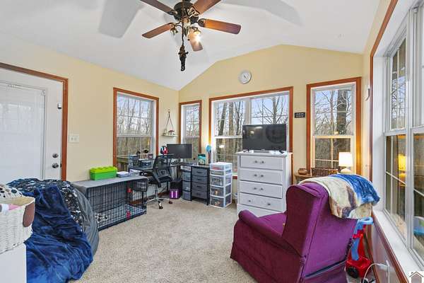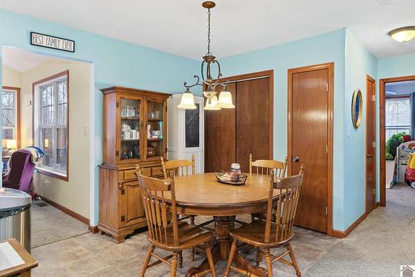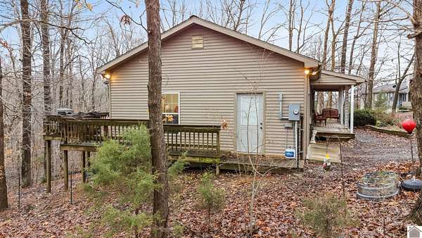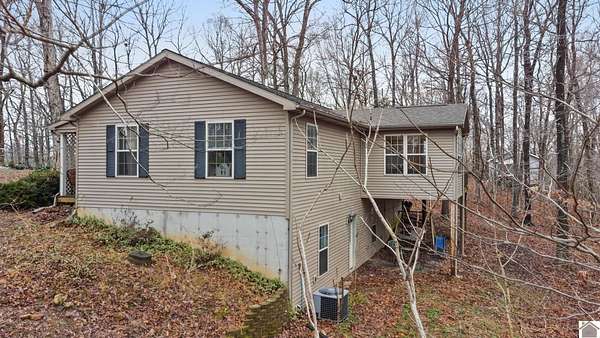 This charming 3 bedroom 2 bathroom home features a sunroom, finished walk-out basement, and attached one-car garage. Built in 2009, it is nestled on 2.07 acres of serene wooded land, offering ample space to explore or expand. The walk-out basement provides potential for additional bedrooms or a kitchenette, perfect for creating a separate living space or anything your heart desires for the space. Don't miss the opportunity to be just minutes from Lake Barkley, multiple boat ramps, and a short drive to I-24 and Fort Campbell, this property combines tranquility with convenience. Make it your own, selling as-is!