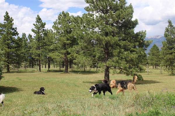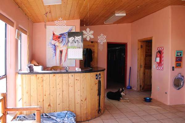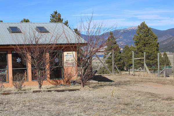 A pet boarding business with a home on 6.7 acres close to Angel Fire. In operation for more than 27 years, Live where you work and work with fuzzy balls of sunshine every day. Kennel has turn outs into the main yard and has a second yard that could be used in case you needed to separate dogs. There is a waiting area, bath area and storage area on the main floor. Business name, website, and any reservations in place will convey. Outside of the kennel is another storage area for supplies or equipment. The house is a nice two story with a great sunroom attached off of the main living area. Three nice size bedrooms with two bathrooms, tile floors and beautiful views of Eagle Nest Lake. The kitchen is a nice size with ample cabinetry for storage and a nice deck to enjoy the cool mountain air. Just a short walk to the kennel!