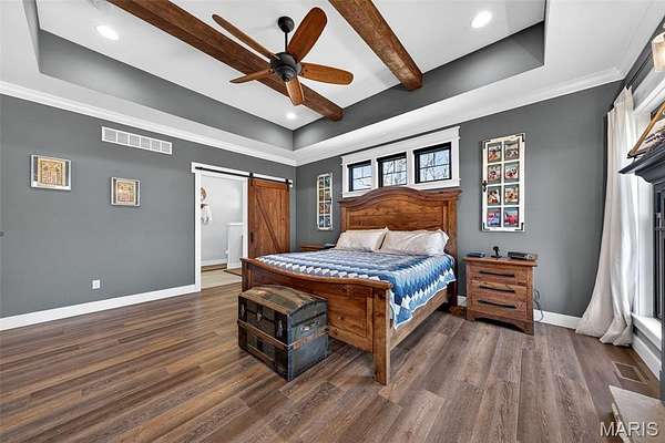 - Beamed Ceilings, Bookcases, Breakfast Room, Ceiling Fan(s), Custom Cabinetry, Double Vanity, Entrance Foyer, High Ceilings, High Speed Internet, Kitchen Island, Open Floorplan, Pantry, Shower, Solid Surface Countertop(s), Tray Ceiling(s), Walk-In Closet(s), Walk-In Pantry