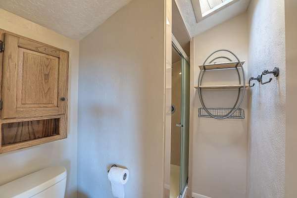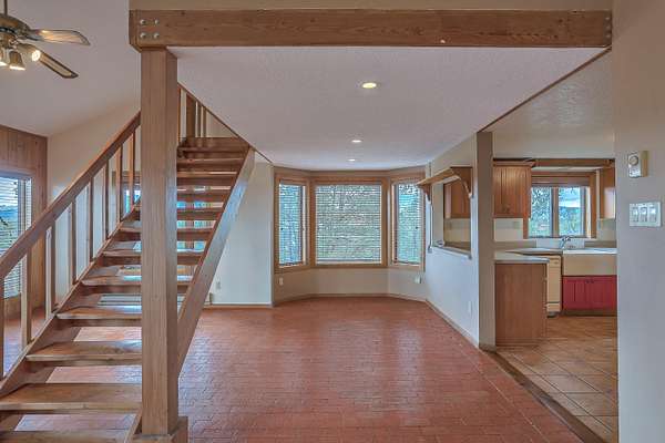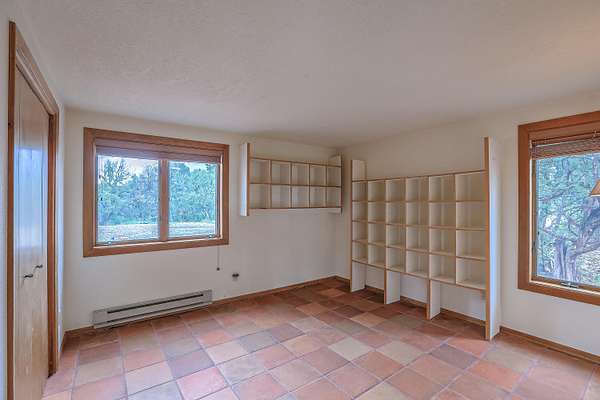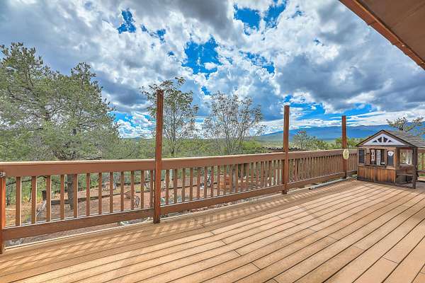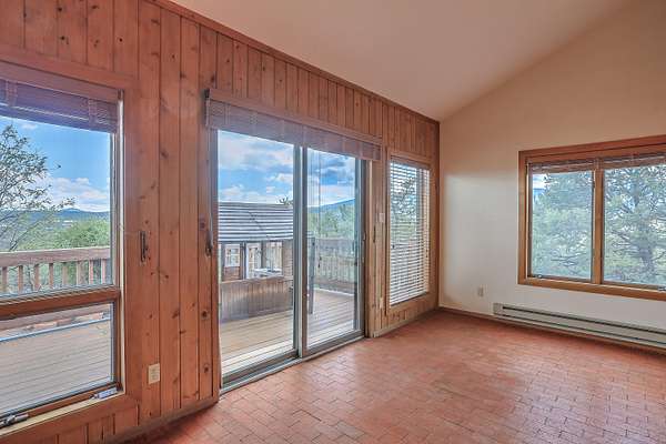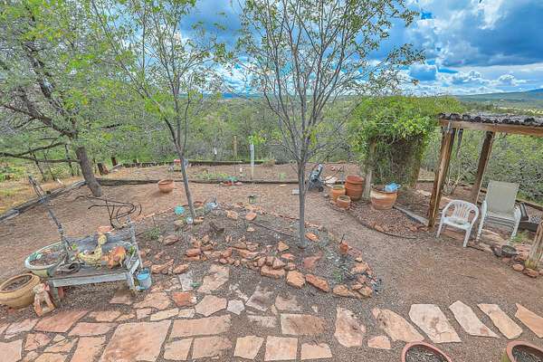 Tucked in a serene setting with incredible mountain views, this 3-bedroom home offers privacy, peace, and comfort in a gated community. Thoughtfully updated, it features remodeled baths, updated kitchen, Anderson high-altitude windows, and abundant natural light. Enjoy cozy winters with passive solar design and a recent wood-burning stove, and stay cool in summer with evaporative cooling. Outdoor living shines with a garden area, ramada, and beautifully fenced grounds. Detached two-car and one-car garages plus a workshop and storage shed provide exceptional functionality. TWO office spaces, one in loft, one in Primary Suite....very flexible use of room space.