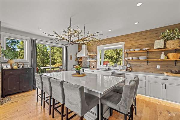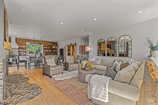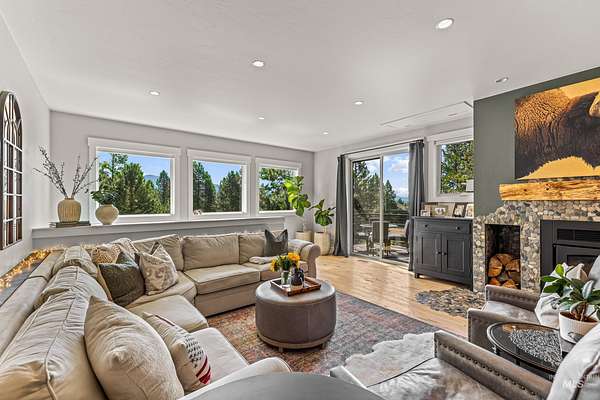Your McCall Mountain Retreat Awaits! Incredibly private 6 acre property but only seven minutes to downtown McCall and Payette Lake. Home was built in 2019 featuring: true hardwood floors, quartz counter tops, stainless appliances, beautiful fireplace, open shelving, large pantry, on demand hot water heater, and picture windows with views of Jughandle to the east. Small office, three bedrooms and two full baths upstairs (including the primary suite). Private guest bedroom/bath down stairs plus large mudroom. Large infra red sauna and hot tub are included. Attached 900 square foot garage with hydronic heated floors, oversized bays and OH doors, plus storage room. Huge new oversized 3 bay barn/shop. 2nd outbuilding - greenhouse and chicken coop with attached raised bed garden area that is fully fenced. Park like yard has built in sprinkler system, mature aspen/evergreen trees. Fenced pasture area and riding arena. New Sampson Trail walking path allows you to walk/bike from the property to town. No CC&R's or HOA's. Agent is Owner.