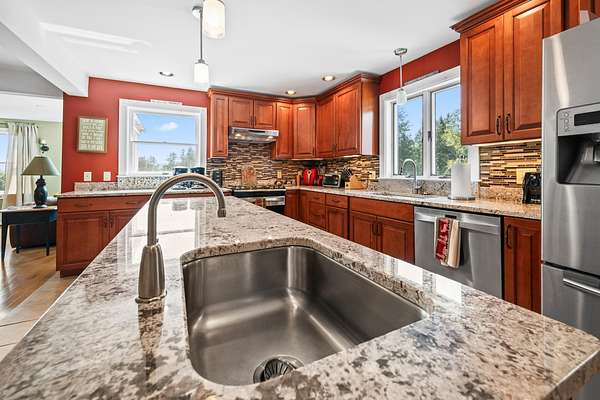 62 Loon Lake Road - Welcome to this beautifully maintained contemporary home set on 3.78 private acres with direct snowmobile trail access right from your backyard! Designed for year-round living, this property offers an open and inviting layout filled with natural light, featuring a like-new custom kitchen, wood floors, and a cozy Harman pellet stove. Enjoy granite counters, large island and stay cool with heat pumps on both levels and in all bedrooms! With 3-4 bedrooms, 2 full baths, and an attached 2-car garage, there's plenty of space for family and guests. Enjoy the seasonal filtered views of Rangeley Lake, abundant sunshine throughout the home, and a spacious yard perfect for recreation. Whether you're looking for a comfortable primary residence or a second home to enjoy all four seasons, this property checks all the boxes. Conveniently located close to Rangeley Village for shopping, dining, and activities, while still providing a private setting. Don't miss this opportunityaEUR"call today!
