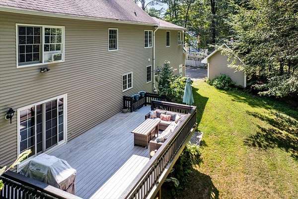 OFFER DEADLINE TUESDAY 8/26 5PM. Located in the sought-after Lyford Lane neighborhood, this updated 4 bedroom, 2.5 bath home offers hardwood floors throughout, open-concept living, and a spacious master suite with 2 closets. The finished 3rd-floor attic makes a great bonus room, while all bedrooms are conveniently on the same floor. Features include a first-floor laundry bath, pellet stove, large unfinished walkout basement, and 2-car garage. Outside, enjoy the oversized Trex deck overlooking a private yard, farmers porch, and two-story shed, and a professional basketball hoop. Added perks: generator, new well pump, and SAU16 schools--all close to commuter routes. Open Houses: Friday 8/22 from 4pm-6pm and Saturday 8/23 from 12pm-2pm