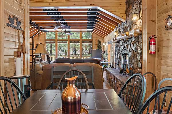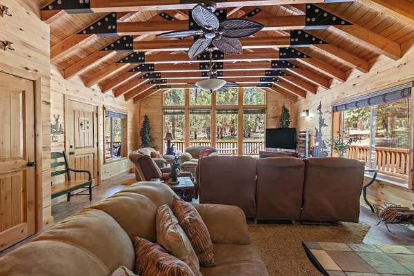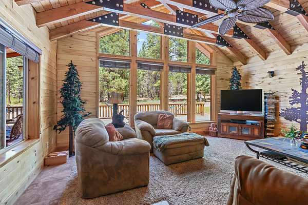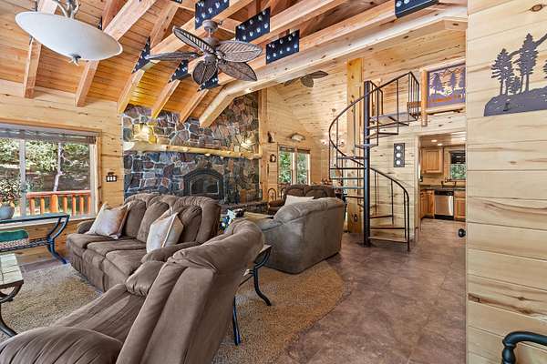 Escape to your own private mountain sanctuary with this beautifully remodeled 3-bed, 2-bath cabin set on 49.23 acres of pristine off-grid living. Surrounded by sweeping ridgelines and endless sky, this property offers unmatched privacy, self-sufficiency, and room to roam. The main cabin has been thoughtfully updated with modern comfort while preserving its rustic charm. A spacious loft easily sleeps up to six guests, making it perfect for large gatherings, retreats, or multi-family use. Step outside onto the 360-degree wraparound deck and take in panoramic views that stretch for miles--sunrises, sunsets, and star-filled nights are all part of the daily experience. This property is fully equipped for off-grid living with solar power, a generator, a 1,000-gallon propane tank, water shares, and a 1,000-gallon water storage tank. A dedicated vented power/utility room keeps systems protected and running efficiently. A charming separate guest cabin (not included in the square footage) provides additional sleeping space or a private getaway for visitors. Outside, you'll find a 1-car garage, an oversized storage container, a firepit, and even a nostalgic outhouse that adds character and history to the property. With tons of RV parking, open terrain to explore, and acres of untouched wilderness, this is the ideal setting for outdoor enthusiasts, hunters, stargazers, and anyone seeking true solitude. Whether you're looking for a year-round residence, a recreational escape, or a family legacy property, this off-grid mountain retreat delivers unmatched beauty, freedom, and possibility.