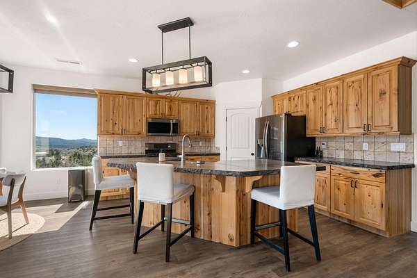 Est $4,045/moNearly new 3bd. 2bath home in Brookside, sitting on 3.02 acres. Backs up to the Santa Clara river along the south east side of the property. Beautiful mountain views off the kitchen and dining room. Living room has wood burning stove and wood floors throughout main living area. Custom wood cabinetry in the kitchen and bathrooms and a spacious custom shower in the primary bedroom with ceiling fans in every room. Huge custom detached garage/ shop measuring 60'x30' (1800 sq.ft. inside) with 14' height.