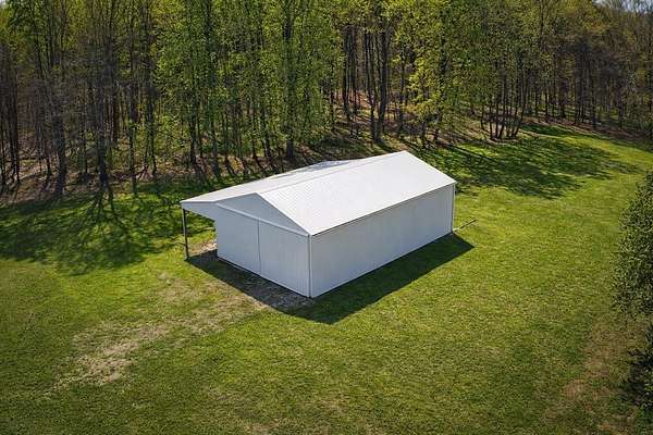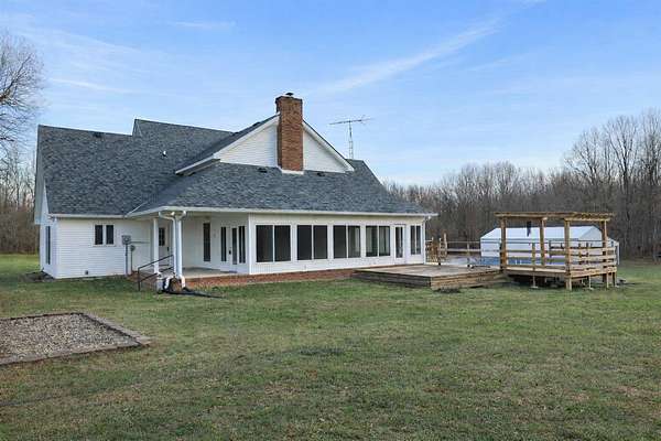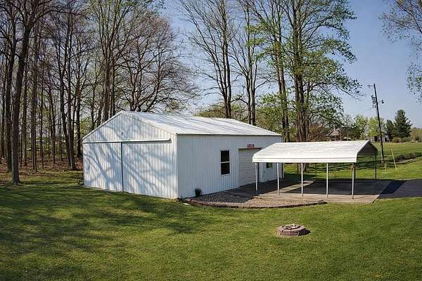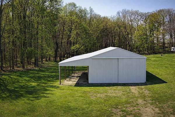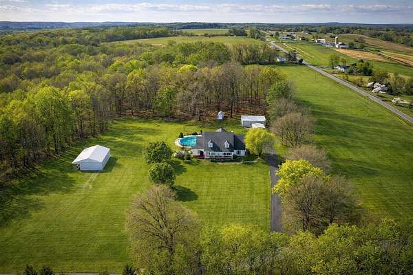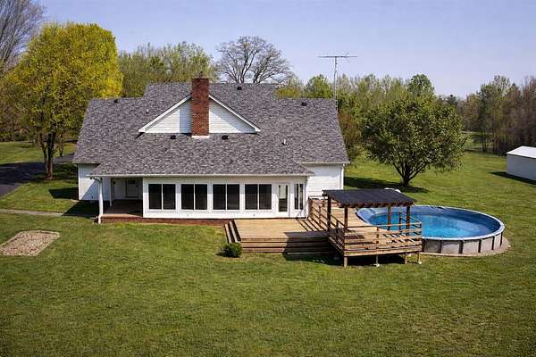 Luxury, Privacy, and Craftsmanship on 9.63 Acres Experience the rare combination of timeless craftsmanship, generous space, and private country living in this exceptional custom-built estate. Nestled on 9.63 beautiful acres, this property offers the quality, character, and versatility that are increasingly hard to find. Inside, rich hardwood flooring, real hardwood trim, and solid wood doors reflect a level of construction that sets this home apart. Designed for both refined entertaining and comfortable everyday living, the residence features a spacious eat-in kitchen, formal dining room, and an impressive living room centered around a striking two-story brick fireplace. The expansive primary suite serves as a true retreat, complete with a private sitting or dressing area, walk-in closet, and a well-appointed bath featuring a jetted garden tub and separate tiled shower. A sunroom stretches across the back of the home, creating a bright and inviting space to unwind while overlooking the private setting and providing convenient access to the above-ground pool. Outdoors, the property continues to impress with a peaceful mix of open yard space, partial woods, and abundant wildlife. Exceptional outbuildings add both function and value, including a 44' x 48' metal building with an attached 48' x 13.8' covered shed, a 30' x 40' workshop, a carport, and a 10' x 20' storage building. Whether you are seeking a private retreat, space for hobbies and equipment, or a distinctive home built with lasting quality, this remarkable property delivers.