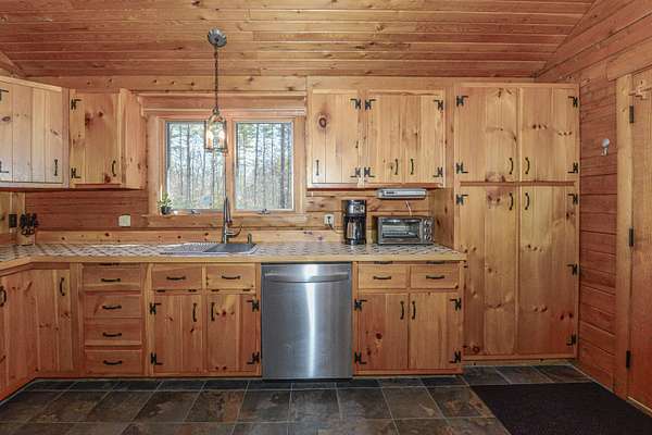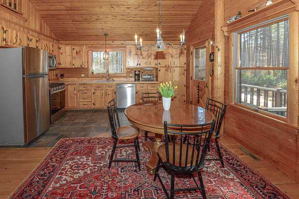 Turnkey Ward Cedar Log Home on 10 Scenic Acres with Saco River Frontage in Desirable Saco River Shores Development Escape to your own private retreat with this beautifully maintained Ward Cedar Log Home, offered fully furnished and completely turnkey, right down to the dishes and kitchen utensils. Whether you're seeking a year-round residence, vacation getaway, or investment property, this charming cabin is ready for immediate enjoyment. Drive down the lantern-lined driveway to arrive at a log cabin set on 10 wooded acres. The property offers a peaceful, natural setting complete with a seasonal pond and direct frontage on the Saco River. Launch your canoe right from your own land or unwind on your private sandy beach while taking in the tranquil surroundings. Even your dogs will enjoy the safe yard with the Dog Watch invisible fence! Inside, the home features 2 bedrooms and a loft, 1 full bath, a cozy loft space, and a bright four-season front porch perfect for relaxing in any weather. With a wood stove in the living area and a propane stove on the front porch, rustic charm meets modern convenience, including wide pine floors, handmade cabinetry, ceiling fans, and thoughtful updates throughout. A full basement for additional living space! Close to all 4 season activities, North Conway, NH, Bridgton, Portland and Fryeburg Academy School District! Recent upgrades include a new 22,000kw Generac generator (2023), new kitchen appliances (2023), a new washer and dryer (2023), and a new furnace and central air-conditioning (2025).