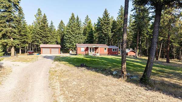 Nestled in the trees just outside Kila, this private 2.8-acre wooded retreat offers the perfect blend of peaceful Montana living and functional space. The 1,056 sq ft manufactured home features 2 bedrooms and 1 bathroom with a large walk-in shower. Inside, you'll find 2 comfortable living areas, providing flexibility for entertaining, a home office, or a cozy den. A wood-burning stove creates a warm and inviting atmosphere, perfect for crisp Montana evenings. Step outside and enjoy everything this property has to offer. A detached double garage provides ample room for vehicles, tools, and recreational gear. Additional improvements include a storage shed, a large secondary outbuilding ideal for hobbies, workshop space or your furry or feathered friends. There is even a classic outhouse for added convenience. The established fire pit and spacious outdoor entertaining area make hosting friends and family easy and enjoyable year-round. With 2.8 acres of privacy, mature trees, and room to roam, this property offers the quiet lifestyle you've been looking for, just a short drive from town amenities while still feeling worlds away. Currently, there is a significant savings on property taxes as the home is taxed separately than the land due to it not being on a permanent foundation. Should the Buyer want or need the home on a foundation, the Seller is willing to share in the cost of this with the Buyer. Schedule your showing today and experience Montana living in the woods!