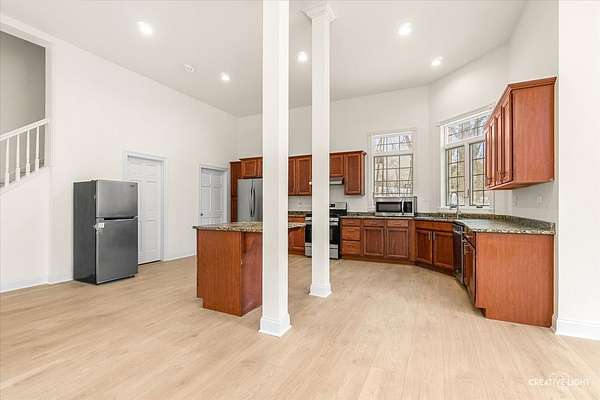 Welcome to this stunning riverside Estate, boasting over 11,000 sqft - where timeless elegance meets natural beauty. Nestled on 2.27 acres of lush, tree-lined privacy, this luxury home seamlessly blends sophistication, modern convenience and unparalleled privacy, truly a rare find. Inside, the entire home features exquisite porcelain finishes, complemented by newly installed striking white oak flooring. The heart of the home is a designer kitchen featuring a massive island with a sink, porcelain countertops, oversized wine fridge, and over $100K in top-of-the-line appliances including a Miele refrigerator and dishwasher, Gaggenau steam microwave oven, and warming drawer-perfect for entertaining. The dramatic 2-story family room with a striking floor-to-ceiling stone fireplace sets the tone for upscale living. All bathrooms updated and boast sleek, durable porcelain tile and marble flooring in the laundry room for a fresh, contemporary look. The custom master closet is a true experience and an absolute showpiece-with extensive built-in shelving, motion censored lights and thoughtful organization throughout. This home is built for comfort and efficiency with zoned HVAC (4 units), two water heaters, and Anderson Windows throughout. The recently remodeled basement offers a full in-law arrangement with second kitchen, stone fireplace, bedroom, bathroom and a theater room that elevates everyday living to something extraordinary. Step outside to enjoy a professionally landscaped yard with a brick paver patio, three brand-new decks, and an in-ground sprinkler system that you can control right from your phone. Located in a peaceful neighborhood, this estate is truly a dream come true for water lovers! With direct access to the river, perfect for kayaking, fishing, or simply soaking in the view, this is more than a home-it's a lifestyle.