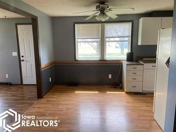 Est $1,081/moRanch style home on 4.64 A. This 2 bedroom home has room to expand in the basement, currently there are 3 unconventional bedrooms (w/o egress windows). Kitchen has pantry, dishwasher, stove, refrigerator and microwave. Kitchen / Dining combination opens into the large living room. Two ample sized bedrooms on the main with bathroom / laundry room. Basement has 100amp breaker box, sump pump and water softener/ iron filter. A new furnace and central air will be installed before closing. Newer vinyl insert windows, owned LP tank, 2 exterior buildings and three bins located SW of Britt. Open faced building is 56 x 60 and the poultry building is 28 x 50.