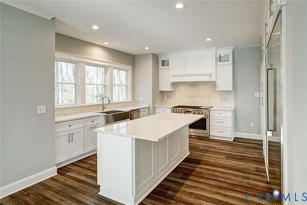 New home for the holidays! Brand new home in the established neighborhood of Dovershire on over four acres of quiet bliss in the heart of Manakin Sabot along the quiet River Road West corridor. The low maintenance home features hardiplank siding, dimensional shingles and a full front porch. The home's interiors are inviting with high ceilings, upgraded luxury vinyl plank flooring and staircase and an open living room, dining room, family room and kitchen for casual family living. You'll love the family room with a vaulted ceiling, gas fireplace and custom wall accent for a wall-mount TV. The kitchen features white shaker style cabinetry, center dining island, cooking wall with GE Monogram dual fuel range with two ovens, GE Monogram separate built-in refrigerator and freezer. White quartz countertops and a glazed tile backsplash. A first floor office is privately located off the kitchen with a front yard view. Upstairs, the primary suite has an oversized hexagon tile shower with dual heads, a rain shower head, double quaratz anity and water closet. Two bedrooms with a jack and jill bath plus a privately located separate guest suite complete the second floor. The third floor features a large bonus room, half bath and walk in closet that would be an ideal playroom or home office studio. 2-car garage has an upgraded paneled wood tone door. Pella double hung windows with low-E glass and screens. Lifetime warranty dimensional shingles with seamless gutters. Brick full front porch with stone accents, brick steps and stamped concrete stoop and sidewalk. Rear painted wood deck. Community lake access! Ideal location in eastern Goochland County just minutes from Route 288 with the lowest taxes in the region. Five minutes to Hermitage Country Club or Richmond Country Club and less than 15 minutes to Wegman's. Highly rated Goochland Public Schools with an Advanced College Academy program. Very convenient to St. Gertrude and Benedictine, Collegiate and Steward Schools.
