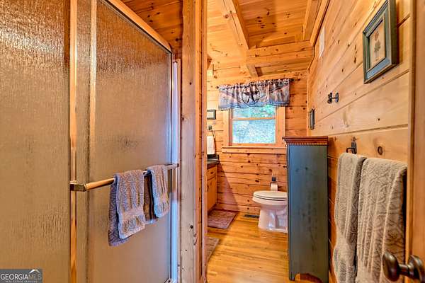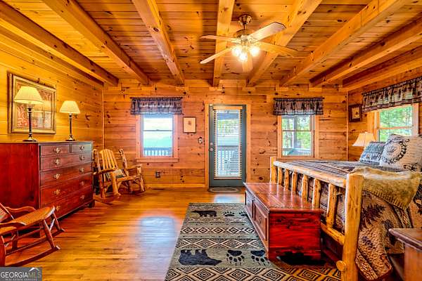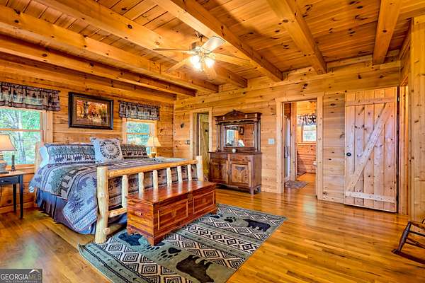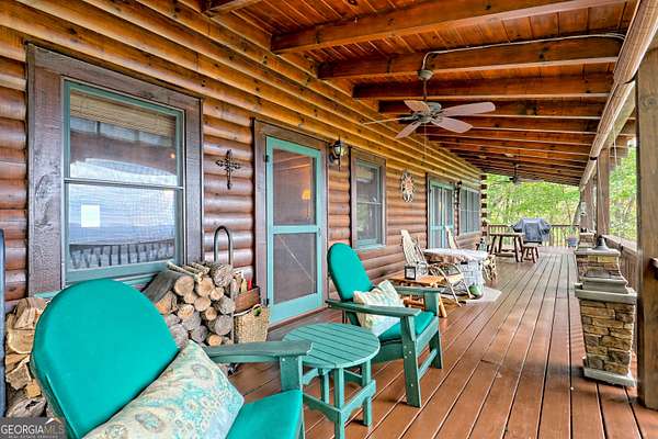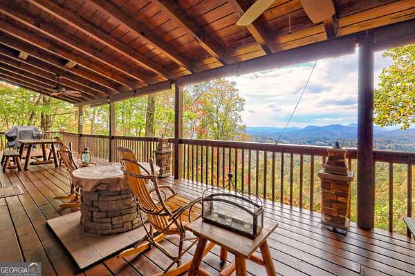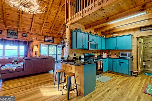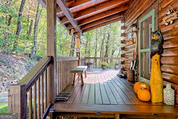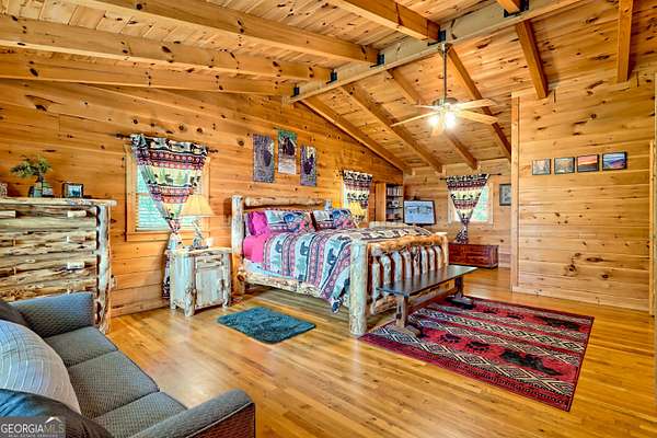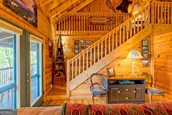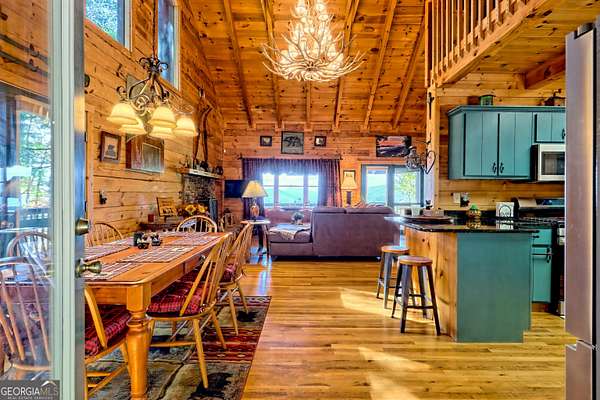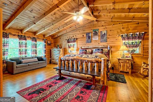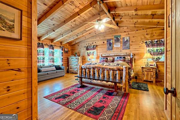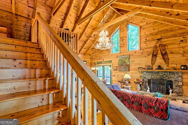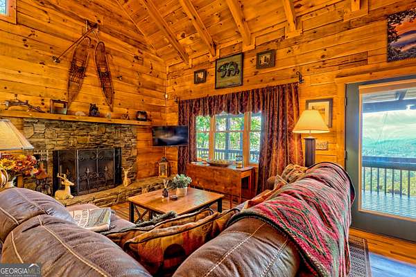 Welcome to your mountain retreat at 620 Falling Creek Trail in the peaceful Bartram Ridge Community near downtown Clayton. This custom-built, fully furnished cabin sits on over 6 acres of private, wooded land with breathtaking long-range mountain views. From the moment you step inside, the home feels like a warm embrace-vaulted ceilings, exposed beams, a glowing rock masonry fireplace, and an antler chandelier set the mood for comfort and relaxation. The updated kitchen features stainless steel appliances, granite countertops, and freshly painted cabinetry-ready for everything from morning coffee to big family dinners. On the main level, you'll find a spacious primary suite with a walk-in closet and private bath, plus a half bath for guests. Upstairs, the loft-level master suite offers a cozy sitting area and a private bath, all furnished in brand-new log furniture that fits the rustic charm perfectly. Downstairs is where the fun continues-a second living area, a kitchenette, and two additional bedrooms with a full bath make it the perfect spot for hosting friends or family. The outdoor living is just as inviting with a wrap-around deck, covered porch, and screened patio with a hammock for lazy afternoons. Recent updates include a freshly stained deck and newly paved access roads. Whether it's watching the sunset with cocoa or sharing stories by the fire, this home delivers mountain living at its best-all while being close to Clayton's shops, restaurants, and outdoor adventures. Call today to schedule your private showing!