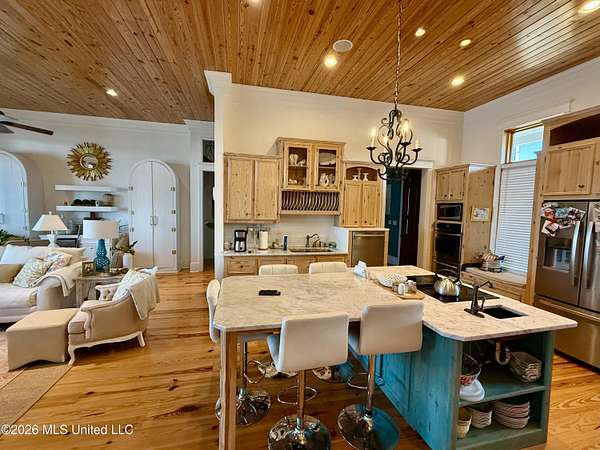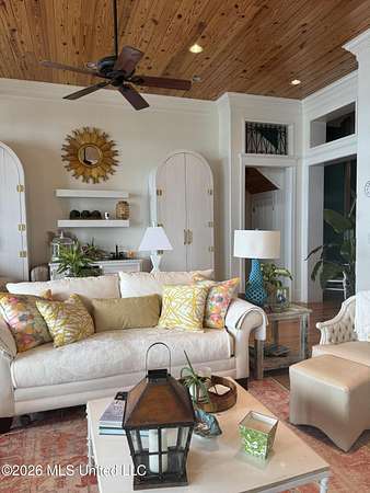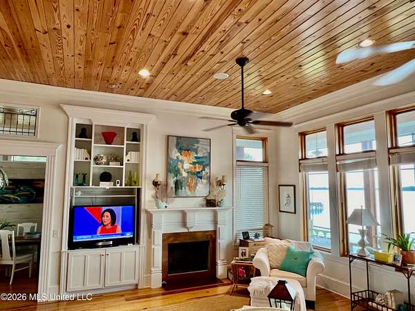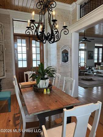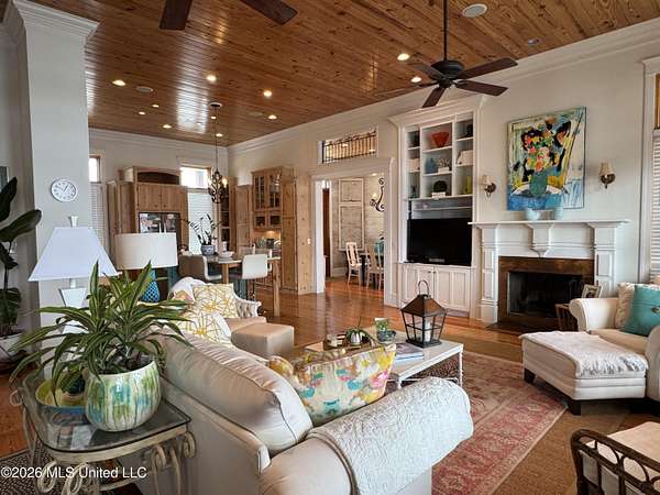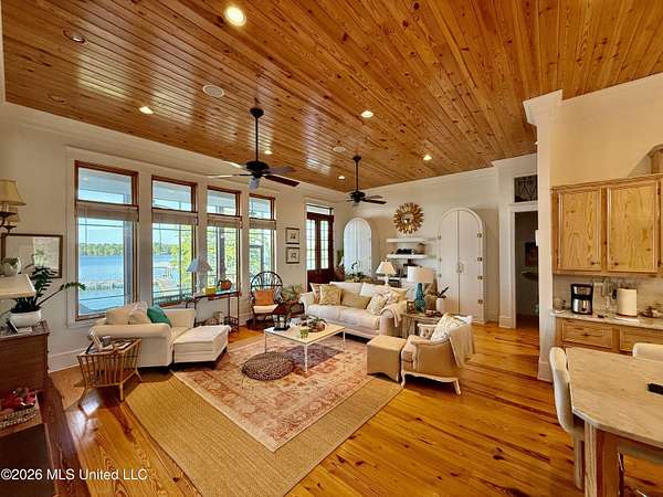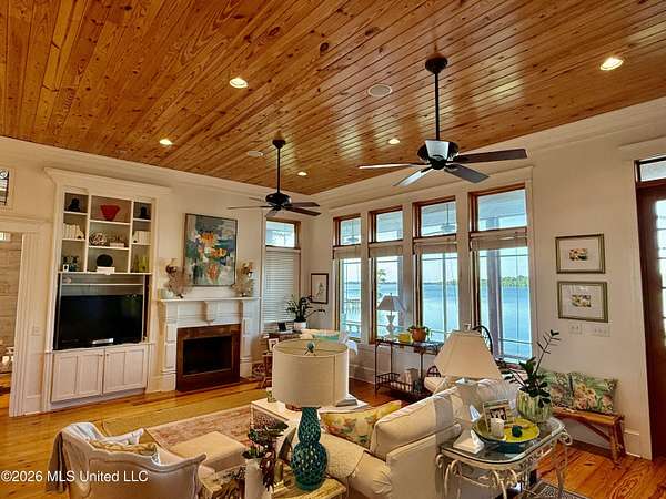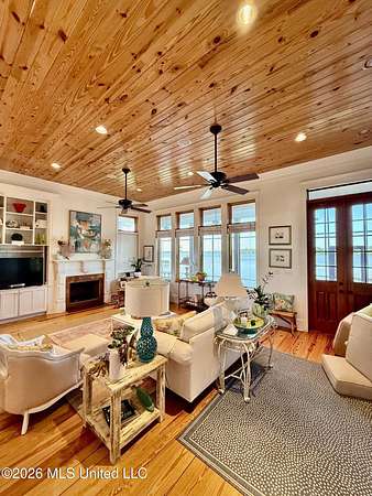 SPECTACULAR CUSTOM LAKEFRONT HOME ON BEAUTIFUL LAKE ST. JOHN-DESIGNED FOR VIEWS & LUXURY LIVING. Experience lakefront living at its finest in this custom-built 2-story home situated on a beautiful lot. Designed by Allison Ramsey Architectural Firm of Beaufort, South Carolina and built in 2005. This thoughtfully crafted home was perfectly angled to capture breathtaking long-range views down the lake. Built with prepainted concrete Hardie board for low maintenance and long-lasting durability, this home is filled with high-end finishes and unique architectural details throughout. Cypress interior doors sourced from Bank Architectural Antiques in New Orleans, Pella windows, and extensive shiplap wall (throughout most of the home) create a warm, timeless coastal feel. The main level features 12' pine ceilings and floors, a spacious living area with a wood-buning fireplace , and wall to wall windows showcasing stunning lake views. The open design flows seamlessly into a well-appointed kitchen offering granite countertops, electric cooktop, warming drawer, raised dishwasher, pantry storage, and a toaster closet. Thoughtful touches like window seats with built in storage makes this home as functional as it is beautiful. The primary suite is located on the main floor, complete with a sitting area and a luxurious bath featuring double vanities, jetted tub, and a separate shower. A half bath is also available for guests. Upstairs offers 9' ceilings, two bedrooms and two baths, along with ample attic storage space. Outdoor living is truly exceptional with a 921 square foot screened porch where you will spend most of your time enjoying the peaceful setting. Below, a deck constructed of Ipe (Brazilian walnut) provides unmatched durability. The property also features a Trex pier with a covered boathouse and lift accomodating a 24' pontoon boat, along with a vinyl seawall. Additional highlights include: metal roof, two HVAC units & two water heaters, built-in bar with ice maker, recessed lighting & detailed molding & woodwork, new septic system, circle driveway with beautifully landscaped yard, covered front porch & a detached garage. This one-of-a-kind lake home offers the perfect blend of quality craftsmanship, comfort, and stunning waterfront views. A must-see property! Schedule your private showing today to truly appreciate all it has to offer.