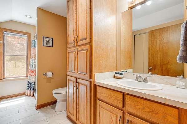 - Breakfast Bar, Ceiling Fan(s), Country Kitchen, Large Master Bedroom, Main Level Living, Primary On Main Level, Rec/Game Room