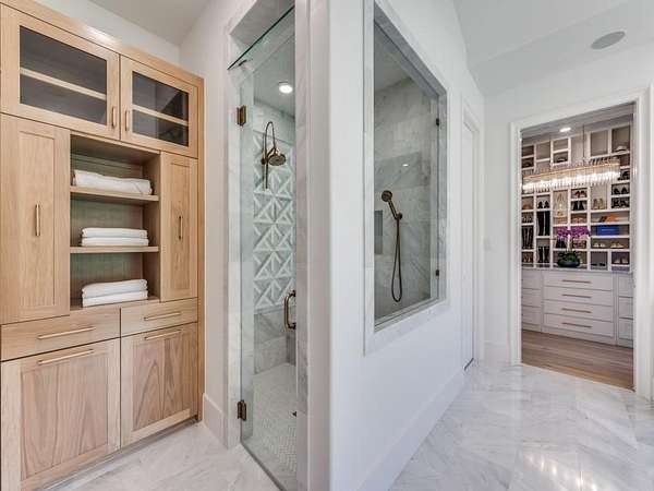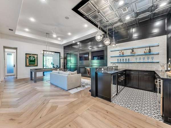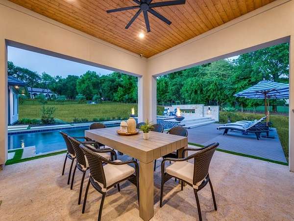 Exquisite estate set amidst two meticulously manicured, tree-lined acres. This entertainer's dream blends refined craftsmanship with luxury living, making it one of the most exceptional properties in North Texas. Showcasing a stunning contemporary luxury design, the home features rich wood beams and white oak floors throughout. The spacious family room, framed by a wall of windows, provides tranquil views of the backyard oasis. The gourmet kitchen is a culinary masterpiece, boasting Carrara marble countertops, a Sub-Zero refrigerator and wine cooler, Wolf gas range, built-in Miele coffee maker and a discrete and fully equipped prep kitchen. The kitchen opens seamlessly to the grand family room, anchored by an elegant fireplace perfect for gatherings and everyday living. A large game room with a wet bar, along with a dedicated exercise room and media room with concealed door entry, provide space for recreation and wellness. The private master retreat offers serene views of the pool and features luxurious marble flooring and walls, dual vanities, towel warmer, heated flooring, a soaking tub, a spacious double walk in shower, and an extraordinary custom closet complete with built in vanity and tornado shelter. Each secondary bedroom is oversized, featuring its own ensuite bath and walk-in closet. Executive office featuring custom built ins complete with unique private ventilated cigar room. Oversized laundry room with two double stack washers and dryers and dog washing station with convenient entry to dog run. Step outside to your resort style backyard, complete with a sparkling pool, spa, outdoor living area with fireplace, kitchen, dining area and fire pit- ideal for relaxing or entertaining guests in a peaceful, secluded setting. Additional highlights include a 5 car garage with extra storage space, gated motor court, and a prime location just minutes from restaurants, shopping and Highway 75. Located within the highly acclaimed Lovejoy ISD.