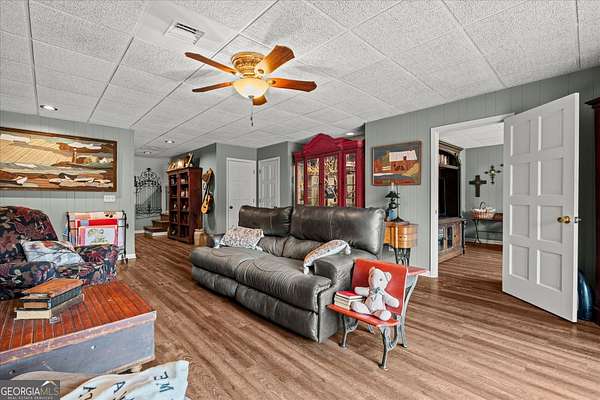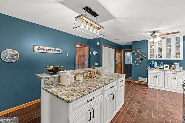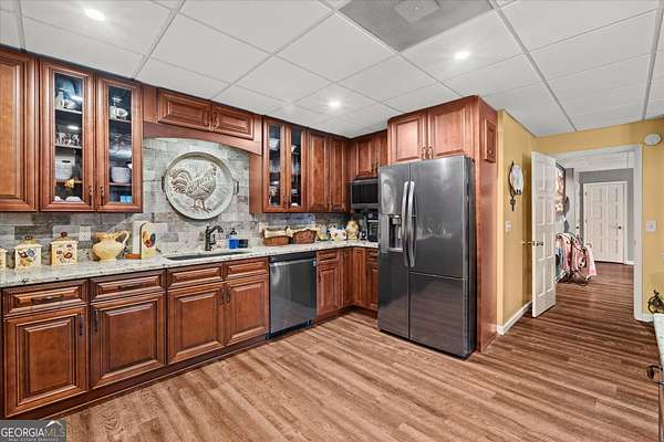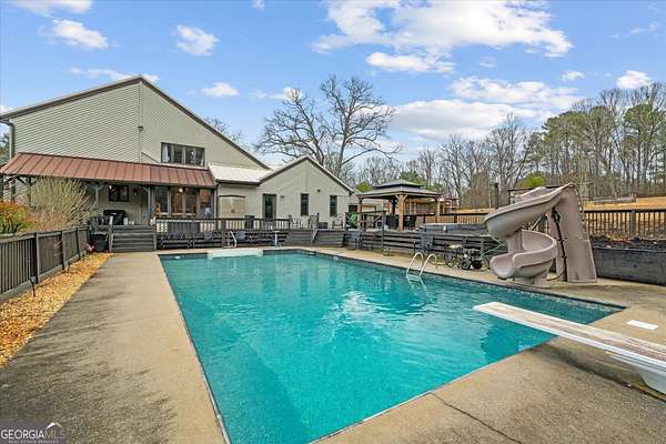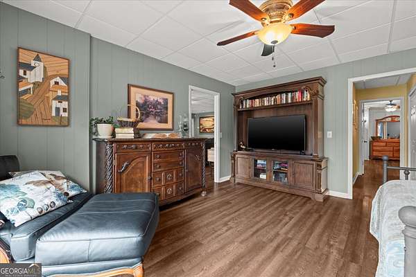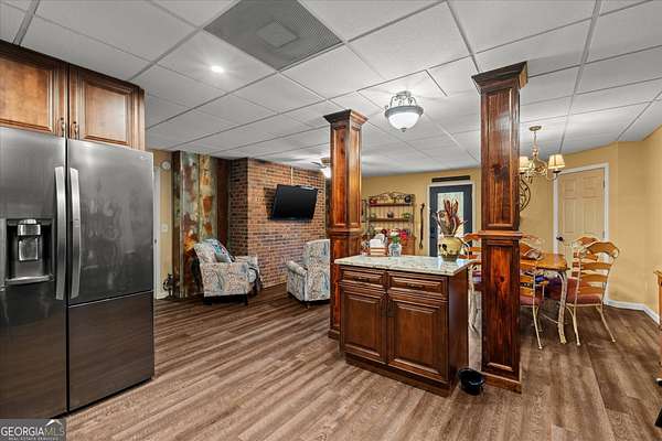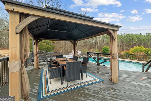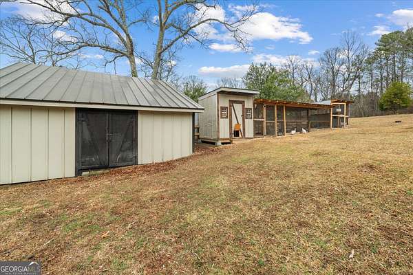 Impressive in both size and design, this 5,080 square foot home offers exceptional space, versatility, and lifestyle features rarely found in one property. From the fully finished basement with in-law living potential to the outdoor amenities designed for relaxation and entertaining, this home truly delivers. The backyard is built for enjoyment, featuring a beautiful pool, expansive deck, and plenty of room for hosting gatherings or simply unwinding in the sun. A charming chicken coop adds character and the opportunity for hobby farming, while the wraparound porch provides peaceful views of the 1.6 acre fully stocked private pond. The porch even includes direct access from the primary suite - perfect for enjoying morning coffee or evening sunsets. Adding even more value and functionality, the property includes two exterior shops. One shop offers approximately 500 square feet and is equipped with garage doors on both the front and back, providing excellent flexibility for storage, hobbies, equipment, or workshop use. Inside, the primary suite offers generous space and flexibility, including the option to keep the custom-built double queen bed or easily accommodate a king. The en-suite bathroom features a walk-in shower, separate soaking tub, and a spacious walk-in closet. The main living area is anchored by a striking stone fireplace wall, creating a warm and inviting focal point. Just beyond, the dining room provides an ideal setting for gatherings. The kitchen is thoughtfully designed with abundant counter space, extensive storage, and the rare bonus of two pantries. A bright breakfast area overlooks the pool, adding to the home's natural flow. Upstairs, you'll find two well-sized bedrooms and a full bathroom. The fully finished basement expands the home's functionality with a complete kitchen, living space, laundry area, hallway closet, and a flexible room that can serve as a bedroom, guest suite, office, or media room - ideal for multi-generational living or extended guests. A rare combination of space, comfort, and lifestyle amenities.