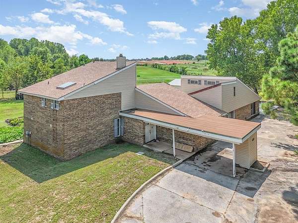 5-Bed, 4-Bath Home on 1.84 Acres in the Heart of Newcastle - No HOA! Home Sweet Home! Experience refined country living in this expansive fully modernized estate, sitting on a spacious 1.84-acre lot with no HOA in a quiet cul-de sac. Located just off Main Street, you're minutes from Hwy 9 and I-44, offering quick access to OKC and surrounding areas. Upon entry, you'll be greeted by soaring ceilings and an open concept layout that flows seamlessly from the formal dining area to the spacious living room. Designed with modern touches and timeless charm, this home features built-in shelving, accent walls, and a wet bar, perfect for entertaining. The northeast upstairs wing hosts the private primary suite complete with its own loft, cozy fireplace, spa-like bathroom, and a massive walk-in closet with granite countertops. Two additional bedrooms are located downstairs, each with its own private full bath and granite counters. The chef's kitchen is a dream with a large island, granite countertops, stainless steel appliances, two built-in stoves, downdraft vent, glistening glass tile backsplash, and a breakfast nook. A walk-in pantry with built-in shelves and granite workspace completes the space. The true mother-in-law suite on the southwest side features a second primary bedroom with patio access, large walk-in closet, and its own private full bath. Upstairs also includes a fifth bedroom with an attached flex room-perfect for an office, playroom, or storage. Outside, enjoy a beautiful garden, open green space, and a massive circle drive with parking for up to 15 vehicles-ideal for gatherings. Conveniently located near shops, dining, and everything Newcastle has to offer. This one-of-a-kind property offers space, privacy, and style-schedule your showing today!