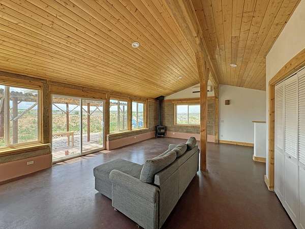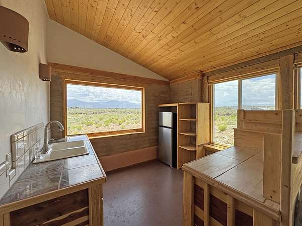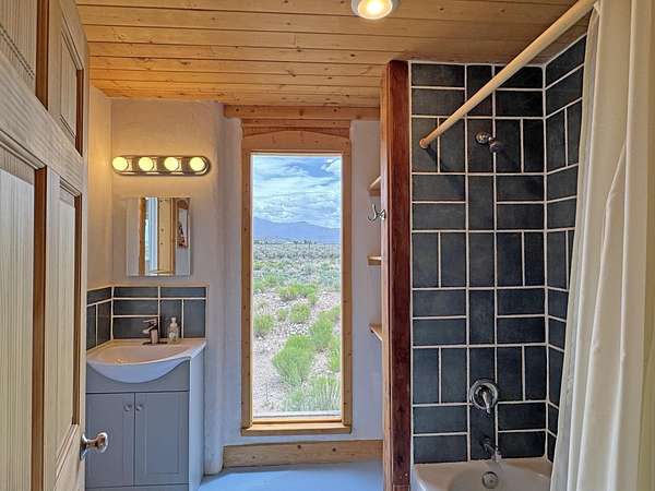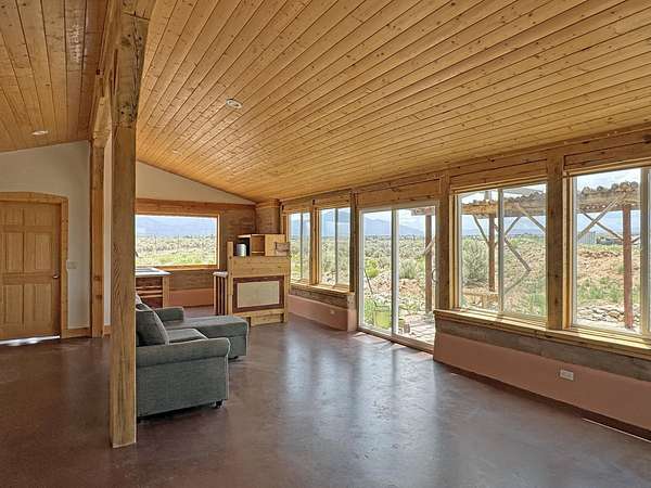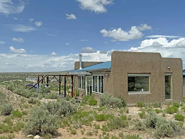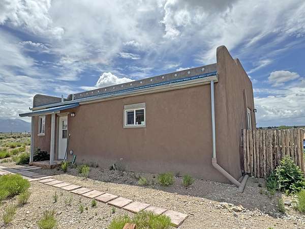 Here's a flexible property featuring two 700 square feet casitas on 2.53 unrestricted acres! Main house constructed in 2017 has entry mud room and open living/dining/kitchen areas with lots of windows framing wrap around views of sunset, Taos Mountain and Sangre de Cristo Mountains. Painted concrete floors with in floor radiant heat. Pitched tongue and groove ceiling, ceiling fan and woodstove maintain comfortable temperatures year round. Easily accessible, finished loft with cabinets provides ample storage. Cook's kitchen has granite tile countertops, is wired for under counter lighting, and has a propane gas range and fridge. Comfortable bedroom with T&G and beams ceiling features a spacious ensuite bathroom with cast iron tub, personal shower and ample linen storage. Mechanical/utility room includes a washer which conveys with sale and storage shelving. On the north side is a sweet exposed adobe wall courtyard containing a paver stone patio and latilla ramada, perfect for dining al fresco and star gazing. Pitched Propanel roof delivers water catchment for a 1700 gallon buried cistern in lieu of conventional well. Seller typically orders supplemental water 1-2 times a year for a cost of approximately $230 each delivery of 1700 gallons. Exterior siding is a combination of stucco and Cape Cod wood siding. Guest house is 714 square feet of flexible space built in 2023 featuring kitchenette with fridge, full bath, wood stove, exposed adobes, and vaulted T&G ceiling with beams and columns. Comfortable full bathroom with linen storage, tub and shower. This structure is heated and cooled with a heat pump mini split system. This space could serve as a studio/workshop, studio apartment rental, or additional property living space. Painted cement floors and wrap around windows with mountain views. Entertain outside with a latilla ramada over paver stone patio. Propanel metal shed roof is plumbed for cistern catchment. Landscape berms cradle both structures, adding privacy and providing a canvass for gardeners. Taosnet broadband Internet in both houses (Kit Carson fiber optic in Tune Drive); cell service on site. Located on a rise with stellar 360 degree views and easy walk to the Rio Grande Gorge and John Dunn bridge, Mamby/Stagecoach and Black Rock springs. GPS: 36.52508202679919, -05.70209218650817. Approximately one acre around the structures is fully fence with a farm gate at the entrance. Wood board fencing provides additional privacy. Circle drive and ample guest parking. Property could be subdivided into three separate parcels. Electric transformer has been installed in lower part of property for future development. All construction county permitted with C/Os in Associated Documents. Seller has left firewood, Colorado red flagstone, adobe bricks and new generator in the original box for the buyer. Approximately twenty minutes from Taos Plaza and half an hour from Taos Ski Valley. Only half a mile off the paved road. This quiet, peaceful property could be developed into three residential properties, a family compound, investment rentals, or horse property. So many options for this creative, energy efficient property built with love!
