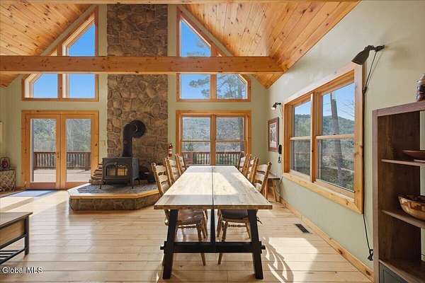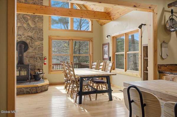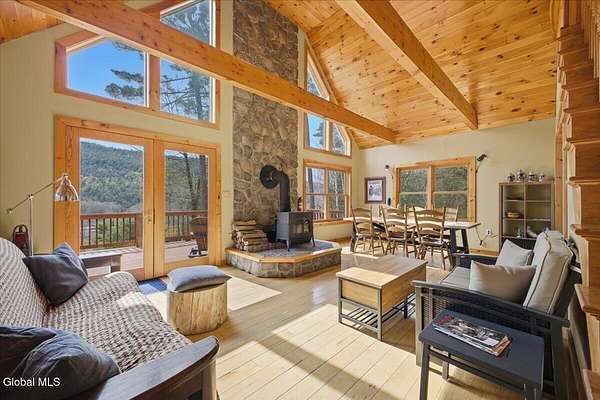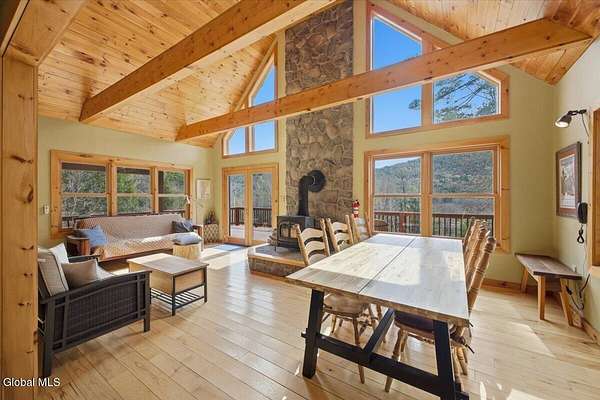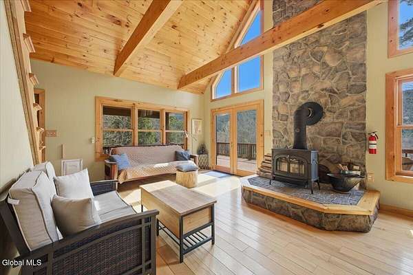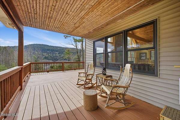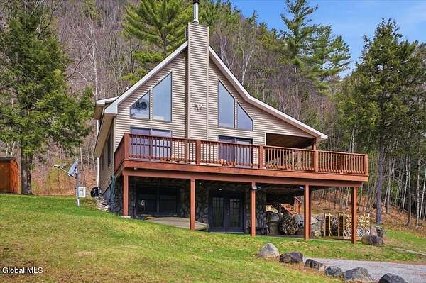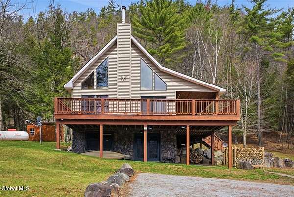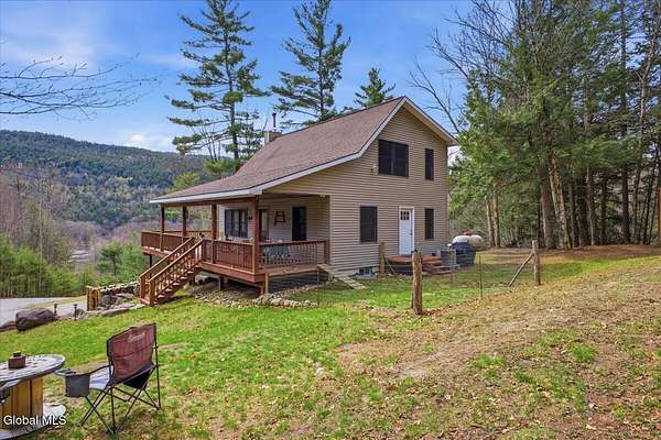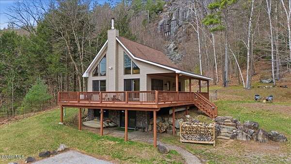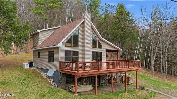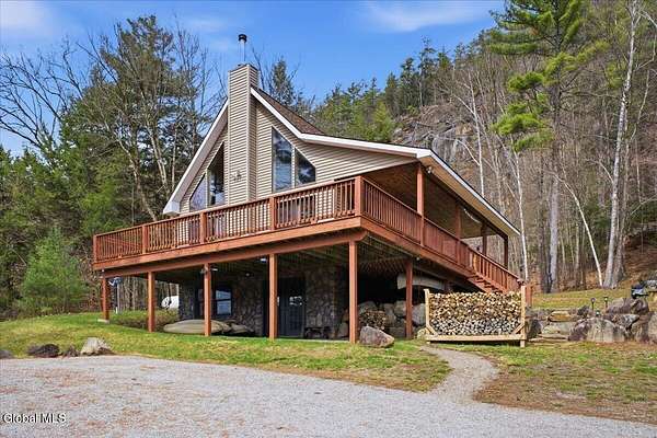 Meticulously Maintained Secluded Cabin In The Woods Situated On Over 6 Acres With Amazing River & Mountain Views. This Beautiful Home Features A Large Partially Covered Wrap-Around Deck, Vermont Castings Wood Stove Along With Custom Kitchen Cabinets And Countertops Crafted From A Large Maple Tree On The Property. This Is A Truly Special Property And The Perfect Retreat To Connect With Nature & Relax. Short Term Rental History Available. Being Sold Completely Turn Key With Kayaks, Canoe And All Furnishings Included. Full Generac Generator And 7 Camera Owned Security System. This Home Shows True Pride Of Ownership & Will Not Last long. Located 20 Minutes From Lake George & 30 Minutes To Gore Mountain. Please See Virtual Tour For Full 3D Interactive Tour.