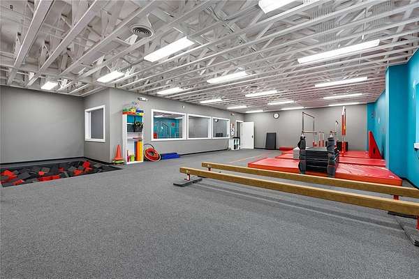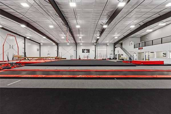 Victory Gymnastics has called this building home for the last 10 years. They have outgrown this facility and have made the decision to relocate to a new location to be able to better accommodate their customers needs. This is a rare opportunity to own a stand alone building in a fast growing area of Marion. The surrounding area is developing quickly with a mix use of buildings including a truck stop, vet clinic, multi family & many dining options just across the highway. Traffic counts at 151 & 62nd Street = 16,000+/day. This property consists of 15,000 sq. ft. of floor space as well as an additional 4,375 sq. ft. of mezzanine area. The main floor features a foyer area, receptionist desk, private office, men's & women's restrooms, a kitchenette, large waiting/open area, as well as 2 other large rooms that could be renovated into offices, etc. (4.365 sq ft.) There is 10,625 sq ft. of open shop/gym area that features 22' sidewalls, heat & A/C, and the building is fully sprinkled. The shop/gym area has 1 12x12 OH door. The building would make a great location for a warehouse/showroom space or just about any use that requires office and warehouse space. This building does have a deed restriction as well as a lease restriction prohibiting another gymnastics, ninja warrior, or trampoline type use to occupy the building. All signs including the monument sign located at the corner of 62nd St & N. Gateway will be removed prior to closing.