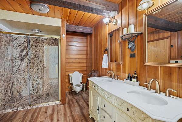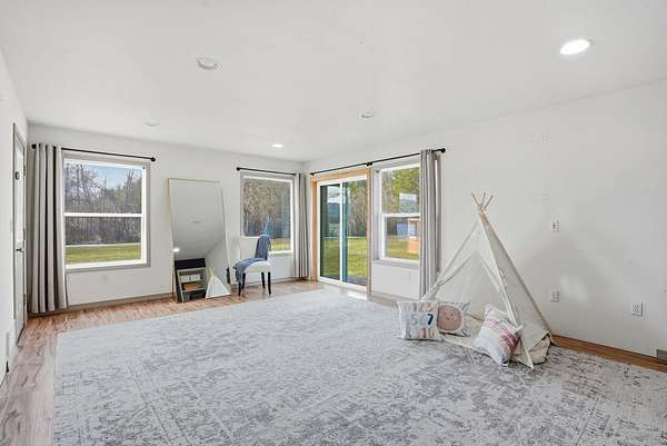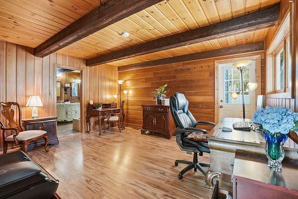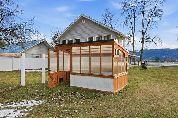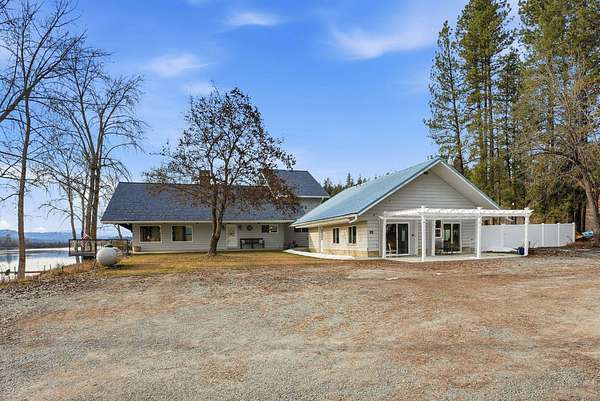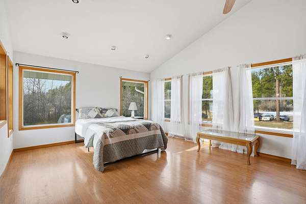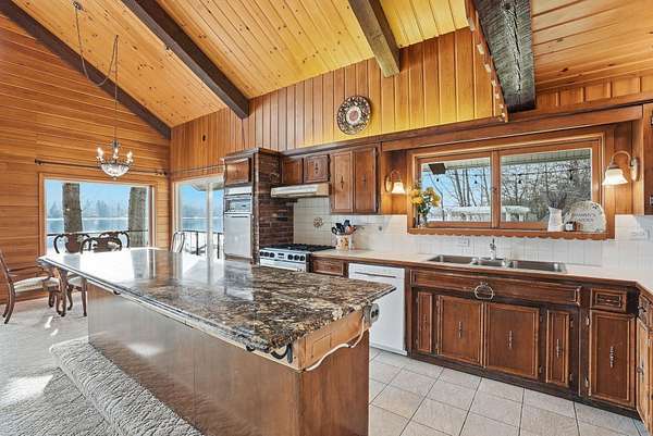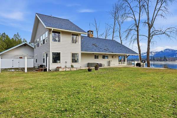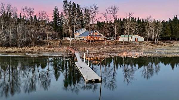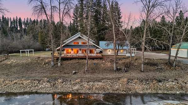 Formerly a well established wedding venue, this magical riverfront property sits on 5 acres. Rustic charm meets open concept living with dramatic cathedral ceilings, expansive windows framing stunning sunset views, and a wrap around deck. A private boardwalk leads down to the water for boating, fishing, or simply watching seasonal swans glide by. The main floor features a spacious primary suite and convenient utilities on one level for easy living. Warm, cozy finishes and flexible open spaces recall its event ready past-ideal for entertaining, hosting guests, or converting back to a venue. Outdoor amenities include flat, usable land, a greenhouse, and a high producing well-perfect for hobby farming, gardens, or expanded event use. Quiet, private and picturesque, this property feels like paradise! An additional adjacent 5 acres is available for purchase.
