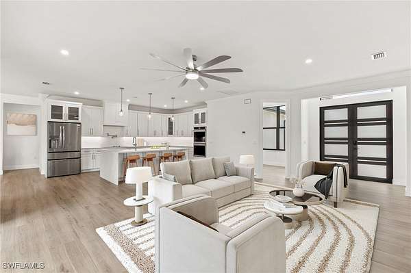NEW CONSTRUCTION!! BRING OFFER!! HUGE PRICE REDUCTION!!! MOTIVATED SELLER! This elegant 4 bedroom,3 bath, home with open floorplan home has all the Bells and Whistles. Plenty of room for a pool. The two and a half acres has the rural feel perfect for your horses, while having the convenience of the interstate only a few miles away. It is New Construction with a split bedroom plan. Enjoy the chefs kitchen with top of the line appliances and an oversized island with Waterfall Quartz Counter Top with deluxe stainless steel farm sink. Also the elegant, contemporary lighting and breakfast nook make it perfect for entertaining. The home features beautiful light wood tile plank flooring throughout. The master bedroom is a spa like retreat with expansive views and opens to lanai. The master bath has a freestanding bathtub and a walk in shower with designer tile and rainfall showerheads and his and hers vanity area with quartz counter top. There is also his and hers custom closets. This home has it all!!! Hurricane impact windows and doors, a private road and no HOA fees.