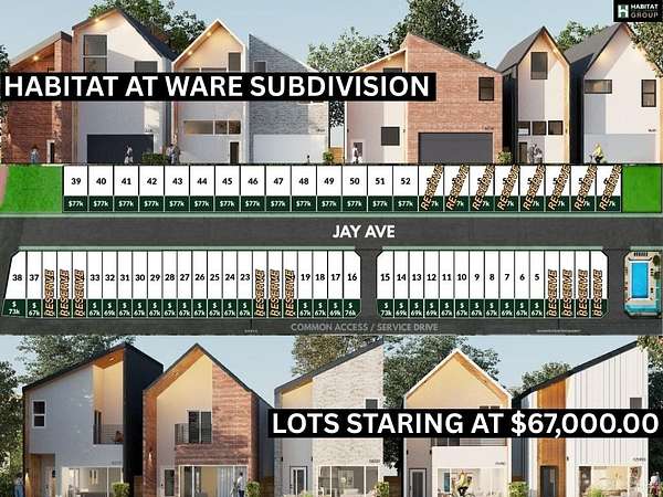 Est $532/moWelcome to Habitat at Ware a unique subdivision that offers 60 Lots with 9 different designs for buyers , builders and investors to select.
