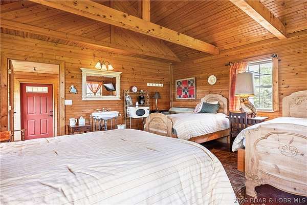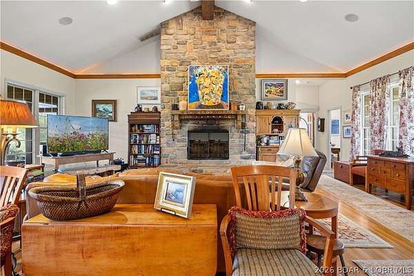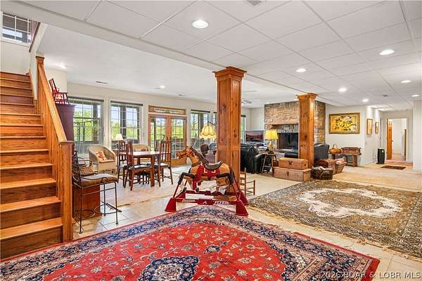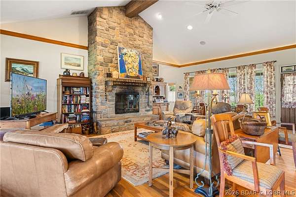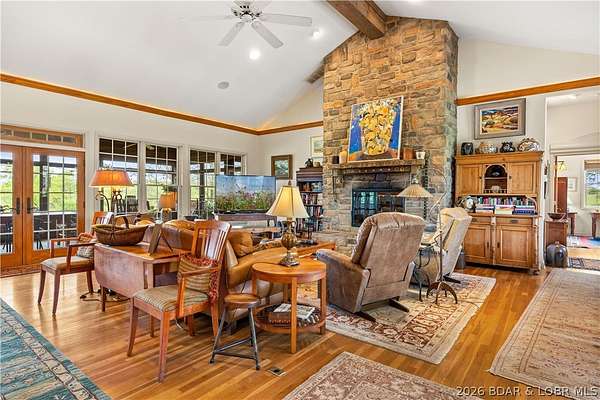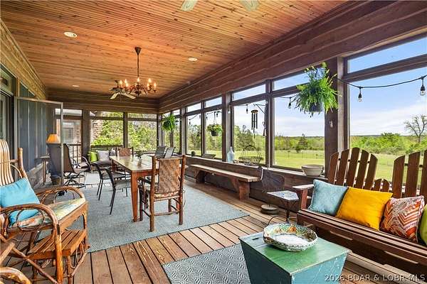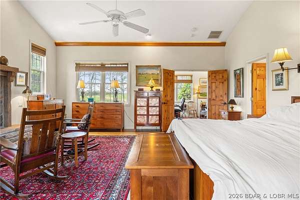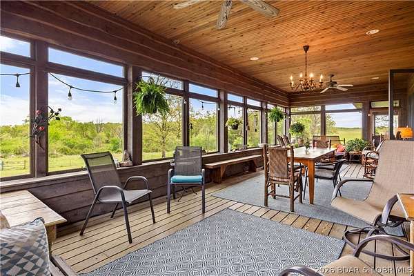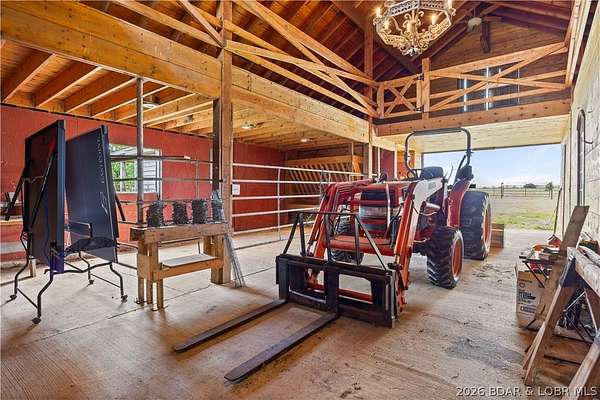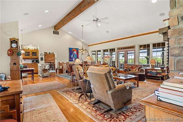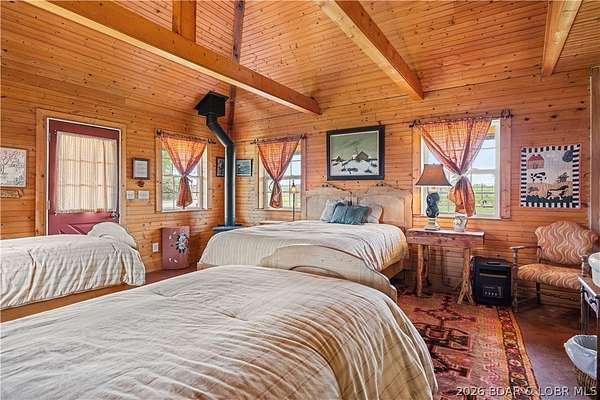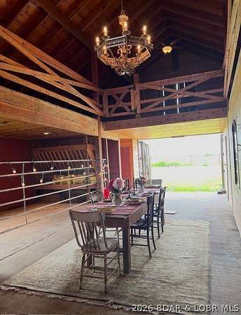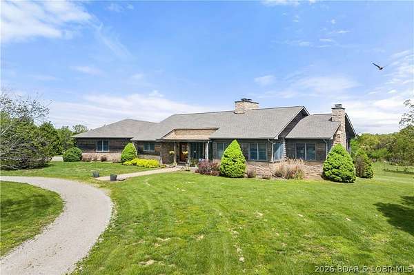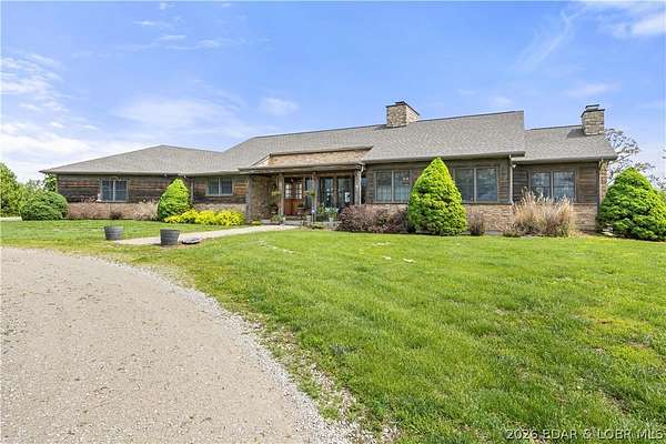Prepare to be impressed as you pass through brick pillars & down a winding private lane to this unique 120-acre sanctuary. Fenced & currently home to cattle & horses, this stunning working farm features three barns, two ponds, & four livestock watering holes. Nestled within this expansive property is an incomparable custom-built home radiating character & charm. The Great Room invites you in with an open floorplan, soaring vaulted beamed ceilings, & a cozy stone fireplace. The dining area flows seamlessly into a gourmet kitchen, leading to a massive screened-in deck perfect for enjoying breathtaking views. The main level hosts an oversized master suite complete with a fireplace, a spa-like bath with a soaking tub & walk-in shower, plus a private den. Every bedroom is an en-suite! A wonderful guest suite offers a kitchenette, fireplace, & private bath. The lower-level walkout basement adds a large family room & two additional bedroom suites. Bonus: a charming guest house located within the main barn. With wooded acreage teeming with wildlife & eagle nesting spots, this is perfect for homesteading, multi-generational living, or a short-term rental. The possibilities are endless!