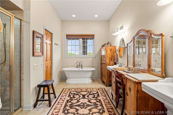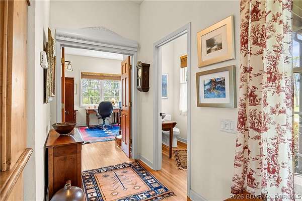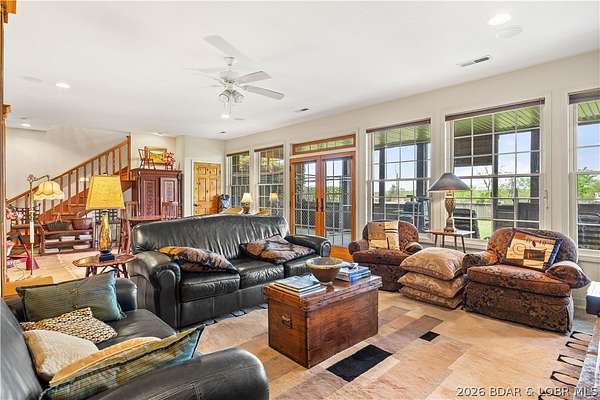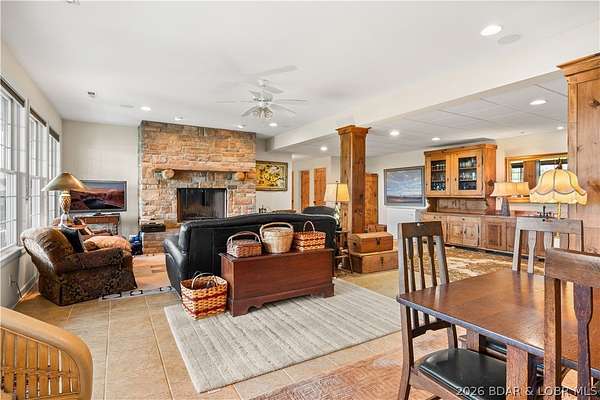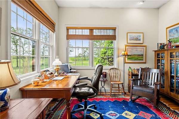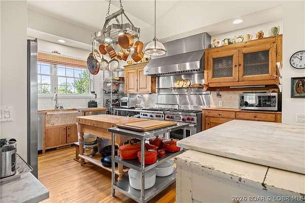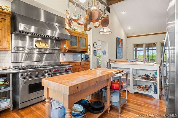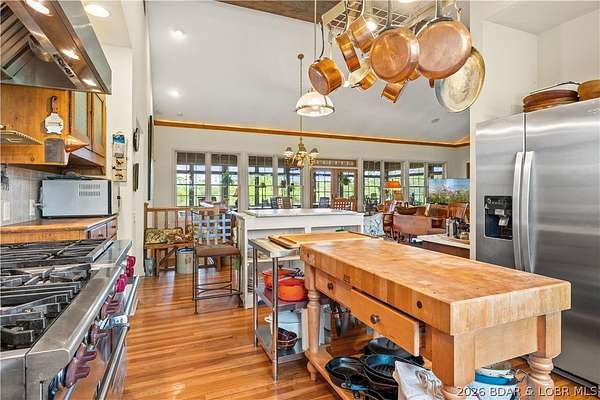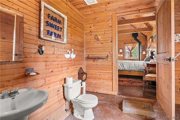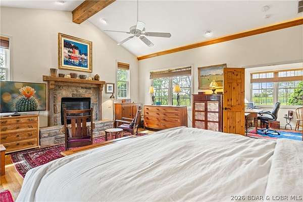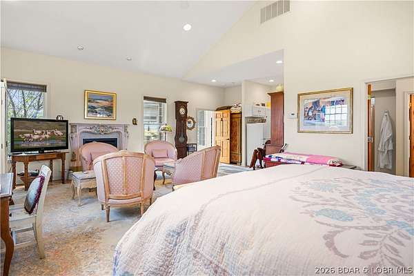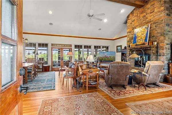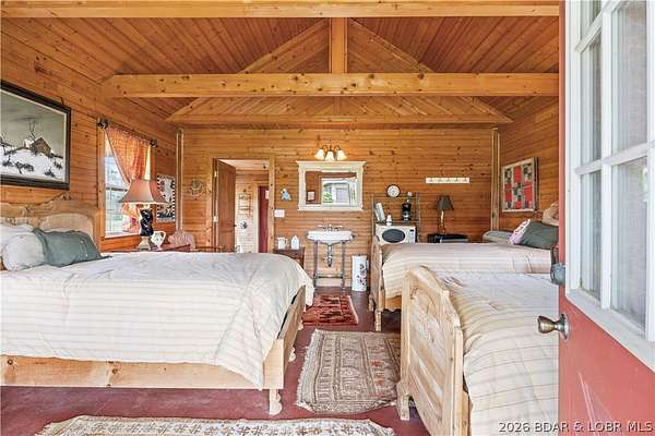Prepare to be impressed as you pass through brick pillars & down a winding private lane to this unique 120-acre sanctuary. Fenced & currently home to cattle & horses, this stunning working farm features three barns, two ponds, & four livestock watering holes. Nestled within this expansive property is an incomparable custom-built home radiating character & charm. The Great Room invites you in with an open floorplan, soaring vaulted beamed ceilings, & a cozy stone fireplace. The dining area flows seamlessly into a gourmet kitchen, leading to a massive screened-in deck perfect for enjoying breathtaking views. The main level hosts an oversized master suite complete with a fireplace, a spa-like bath with a soaking tub & walk-in shower, plus a private den. Every bedroom is an en-suite! A wonderful guest suite offers a kitchenette, fireplace, & private bath. The lower-level walkout basement adds a large family room & two additional bedroom suites. Bonus: a charming guest house located within the main barn. With wooded acreage teeming with wildlife & eagle nesting spots, this is perfect for homesteading, multi-generational living, or a short-term rental. The possibilities are endless!