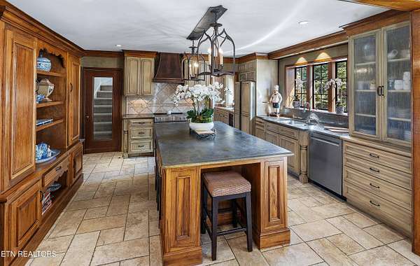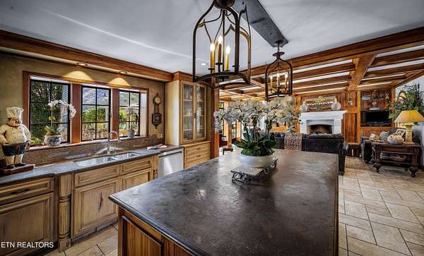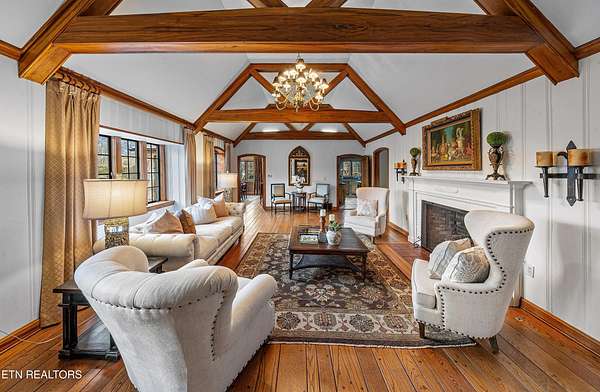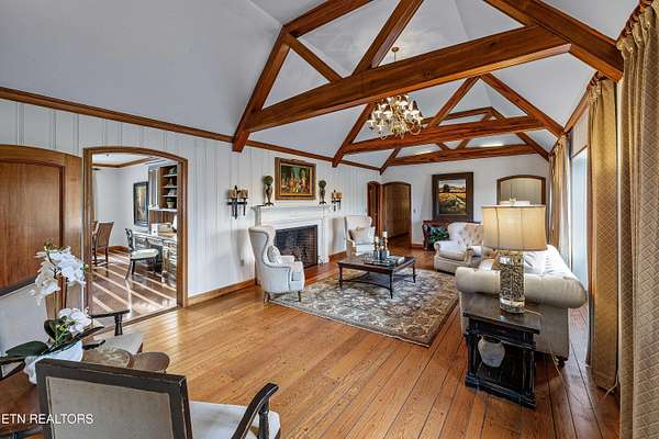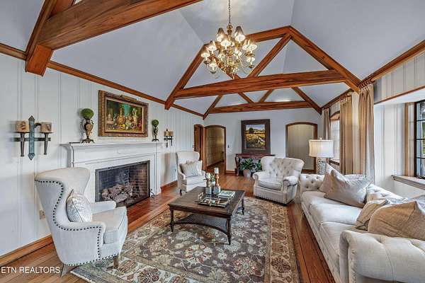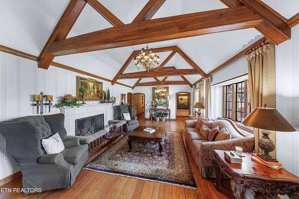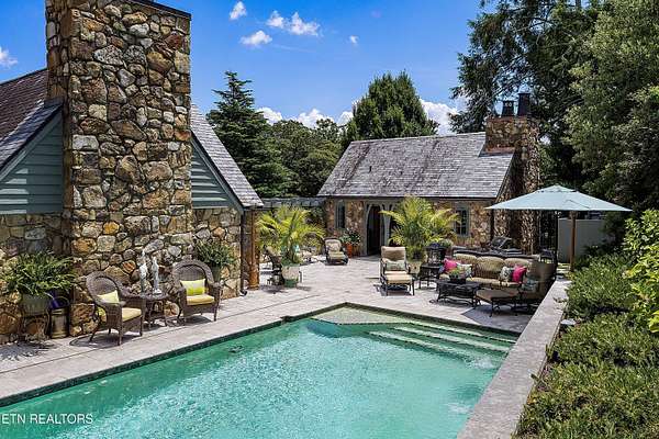 Arguably the most iconic home in Knoxville, is now being offered for sale for the first time in nearly 30 years. Rarely do homes of this prominence and notoriety come to market. A home where dreams are created. A home that will tell tales of great gatherings both large and small. A home that will provide sanctuary and rest. Welcome to 6203 Westland Drive - an iconic home that is a true jewel among gems within the historic homes of Knoxville. The incredible and expansive lush front lawn with gardens, mature trees, a babbling creek, and stone bridge capture your heart as you approach this elegant home. Through a secured gate, the brick paved circle drive welcomes guests and family to this special 1940's home crafted of stone. The formal living space with an expansive series of windows, focal fireplace, vaulted ceiling and exposed beams comes together to create the perfect venue for entertaining. The back of the home hosts the informal living space with a rich wood coffered ceiling, built-ins, and an expansive fireplace and mantle. A large open kitchen, which is seamlessly attached, has a large island/breakfast bar, stainless appliances, paneled refrigerator, glass-front cabinetry, ample storage along with a butler's pantry with additional sink, beverage fridge and storage. The formal dining room has space for sideboards and boasts large windows overlooking the front lawn and creek. Wood paneled walls and a wood coffered ceiling give a warm and inviting atmosphere to the parlor where books can be savored and deals made. The primary suite is spacious with ample natural light and a spacious bath for two with dual vanities, walk-in shower, soaking tub and opposing walk-in closets with rich wood cabinetry, shelving and hanging space. An additional bedroom with an attached bath completes the main level, and a large private bedroom suite with room for seating, built-ins, a reading bench, and a spacious bath is upstairs. Off of the kitchen is access to an upstairs bonus room perfect as a playroom, private living space or a room for your creative hobbies. The lower level of the home has the remaining bedroom with a stone fireplace and bath along with an exercise room and a wine cave for your treasured vintage wines. The back exterior of this home offers plenty of space for entertaining. Stone pavers surround the inground pool and water feature and offers uncovered vignettes for dining, sunning, or simply relaxing by the pool. On sunny summer days when a bit of shade is called for or crisp fall evenings when a cozy fire is just what you need, a spacious gazebo with vaulted ceilings, fireplace, wet bar, and exposed beams unite for outside living space that can be enjoyed throughout the seasons. A truly unique property that redefines your expectations and home where you can create an exceptional life