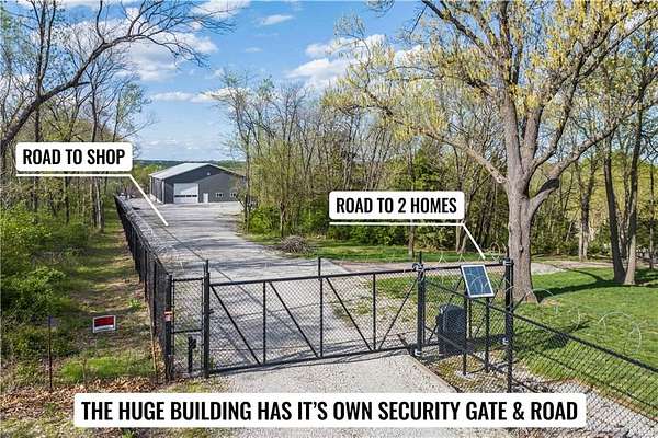 Prepare to be captivated by this one-of-a-kind meticulously designed property with 29 acres that blends luxury, recreation, nature, & location. Whether hunting, shooting, fishing, hiking, running the hills, horseback riding, exploring trails on your ATV or simply watching wildlife from your deck this estate offers something for everyone. Every build on the property has bathrooms, showers, & kitchenettes. Does a bear do its business in the woods? not on these 29 acres because there are bathrooms everywhere. The 7,000+ Sq. Ft. Warehouse with commercially installed concrete floors that housed 100,000+ pound trucks at one-time. Whatever the temperature is outside the warehouse has never been below 42 degrees in the winter & never above 82 degrees in the summer because it's insulated for comfort with spray foam insulation. The warehouse has two bathrooms, a shower, & kitchenette. You could finish the loft & still have enough room for a bedroom. A durable, covered CONCRETE dock that you can drive your car or truck on overlooks 2 fully stocked ponds, that make fishing a pleasure since you won't be baking in the sun. When you're done fishing, have a fish fry or cook the animal or bird from your hunt right on the dock or in the spacious 1,536 sq. ft. pond building with 2 bathrooms, a shower, & still enough space to relax & entertain with family & friends inside the building or outside on the huge 48' x 16' covered patio. The Butterfly Garden & Flagstone Patio is a tranquil oasis featuring vibrant plants, a flowing creek, and native stone accents, ideal for moments of relaxing with your favorite beverage. Over a mile of private roads wind through the trees & connect to every building & the pond. The property originally had 2 homes and the seller added everything else over the last 7 years to elevate the property to extraordinary levels. Don't miss your chance to own a slice of paradise in the heart of the Midwest.