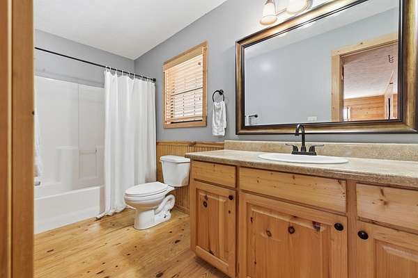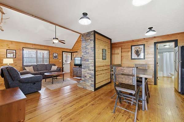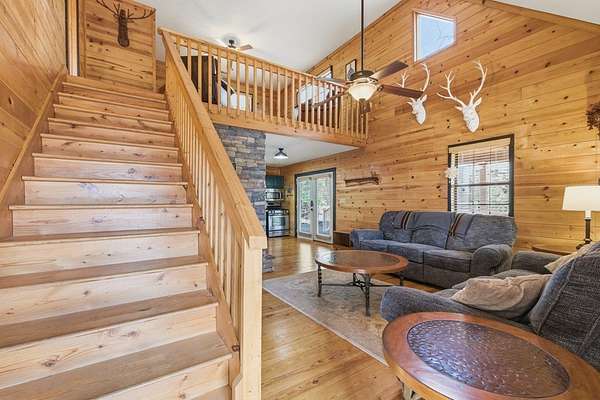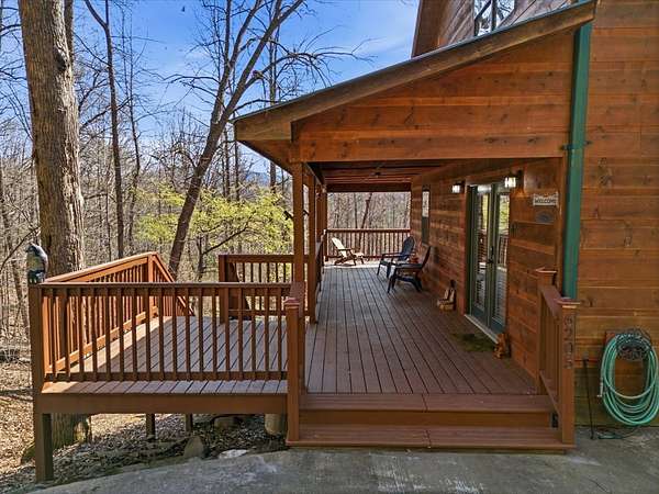 MOVE IN READY FULLY FURNISHED CABIN MINUTES FROM TOWN. This is the perfect mountain escape at a great price featuring three bedrooms and three bathrooms with a spacious loft and a finished game or rec room in the basement. The interior is clean and well kept with tasteful fixtures throughout and a cozy gas fireplace. The updated kitchen includes stainless steel appliances and laundry is located on the main level for maximum convenience. Large bedrooms and an open loft provide ample space for guests or a home office. Sitting on almost two acres of mostly level usable land which is a rare find in the mountains this property offers expansive wrap around porches perfect for relaxing in the fresh air. Highlights include a private treehouse and a custom fire pit area for outdoor entertainment. The driveway is paved all the way to the home for easy access and excellent drainage. Whether you are looking for a personal retreat or a turn key short term rental this home checks every box. A Must see to appreciate so schedule your showing today.