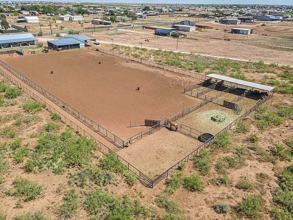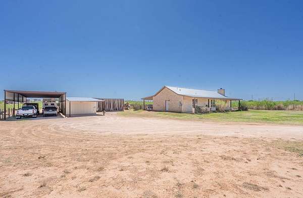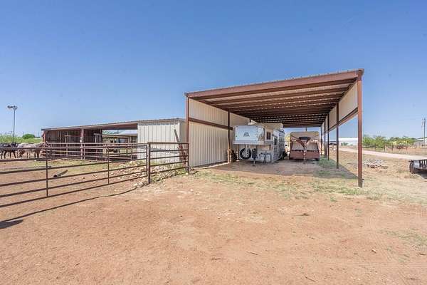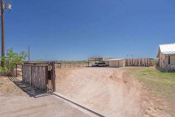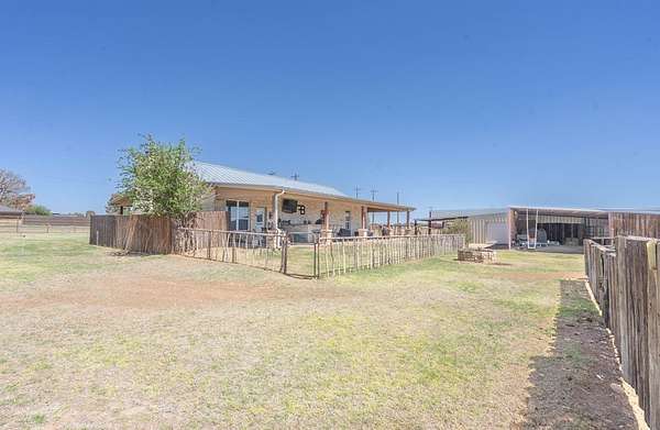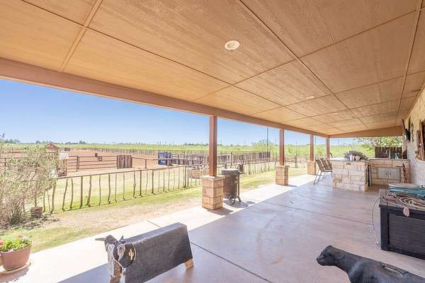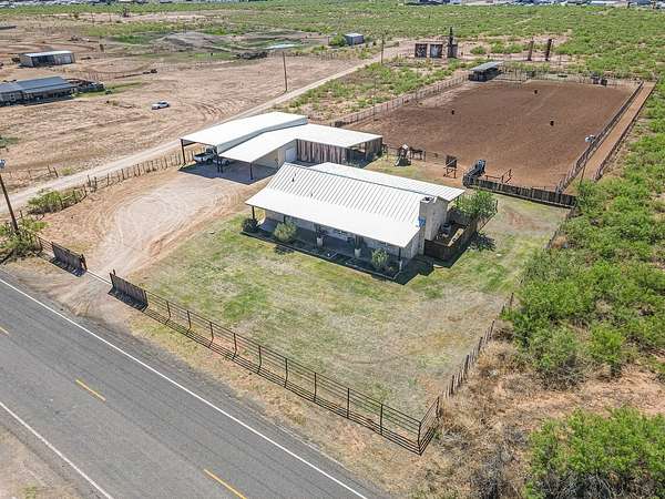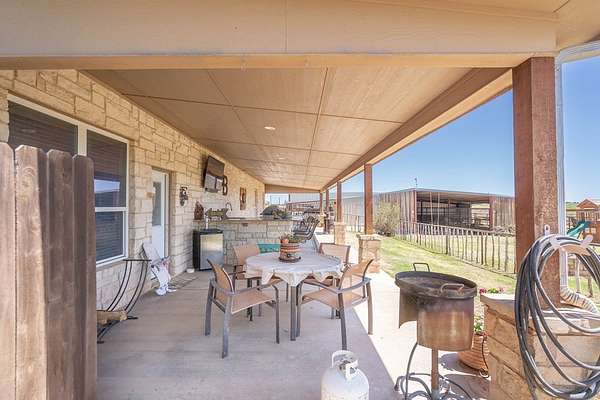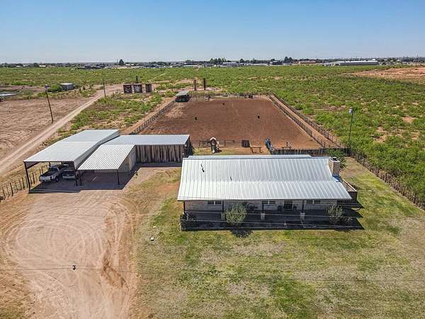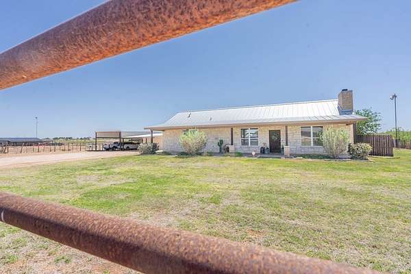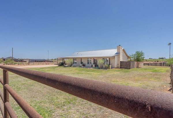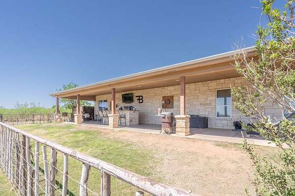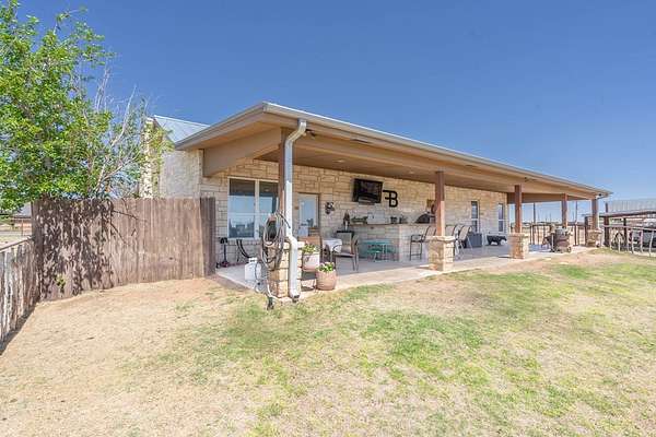 Est $3,429/moRemarkable horse property! Hill country-style home features an open-concept floor plan, showcasing a gorgeous farmhouse-style kitchen with a freestanding island and a walk-in pantry. Inviting living space with an Austin stone fireplace. Great-sized bedrooms with large walk-in closets. Step outside to find the impressive patio area with an outdoor kitchen overlooking the property. Roping arena with lights, horse barn, covered trailer/RV parking, and shop area. Property entirely fenced w/ gated entry. New standing seam metal roof and water heater. Own your own slice of West Texas Paradise!